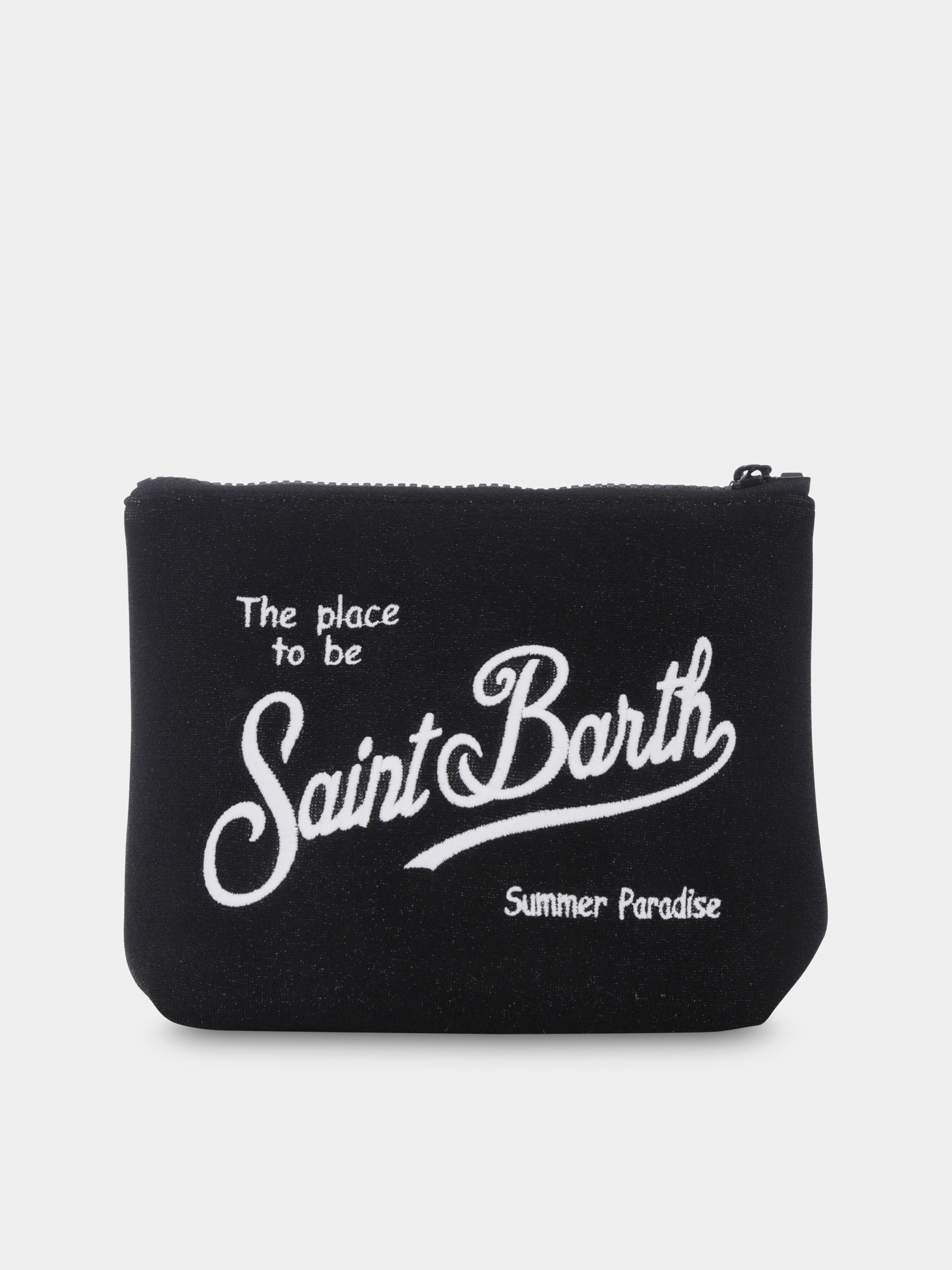 Colore: Nero Descrizione: Pochette nera in lurex, con manico e chiusura superiore con zip. È decorata con logo sulla parte anteriore e posteriore. Dimensioni (L x A x P): 20cm x14,5cm x7cm Dettagli: 70% Neoprene, 30% Poliestere.