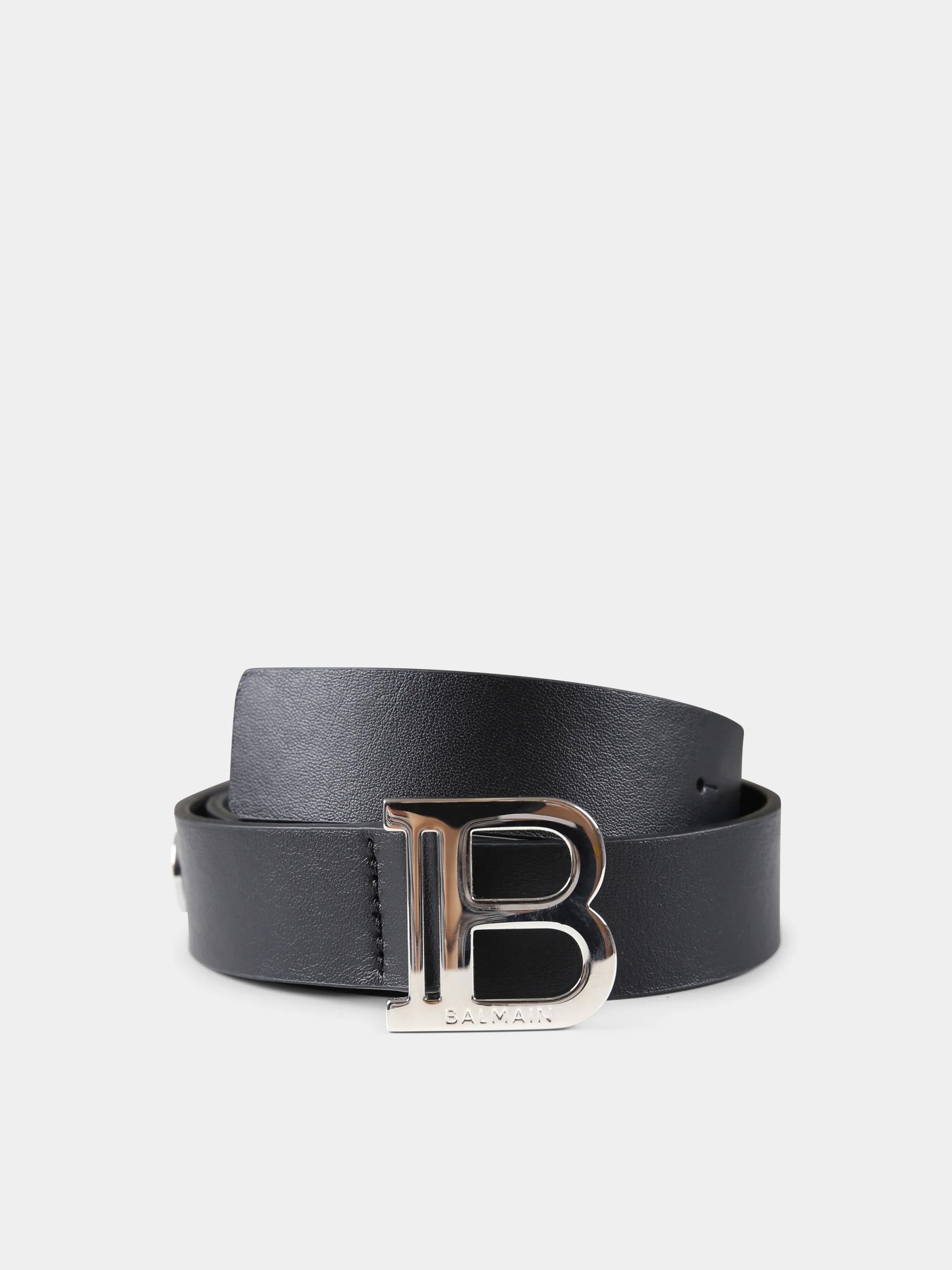 Colore: Nero Descrizione: Cintura nera in pelle, con fibbia argento in metallo a forma di iconica B e dettagli logati in metallo. Made in Italy Dettagli: 100% Pelle.