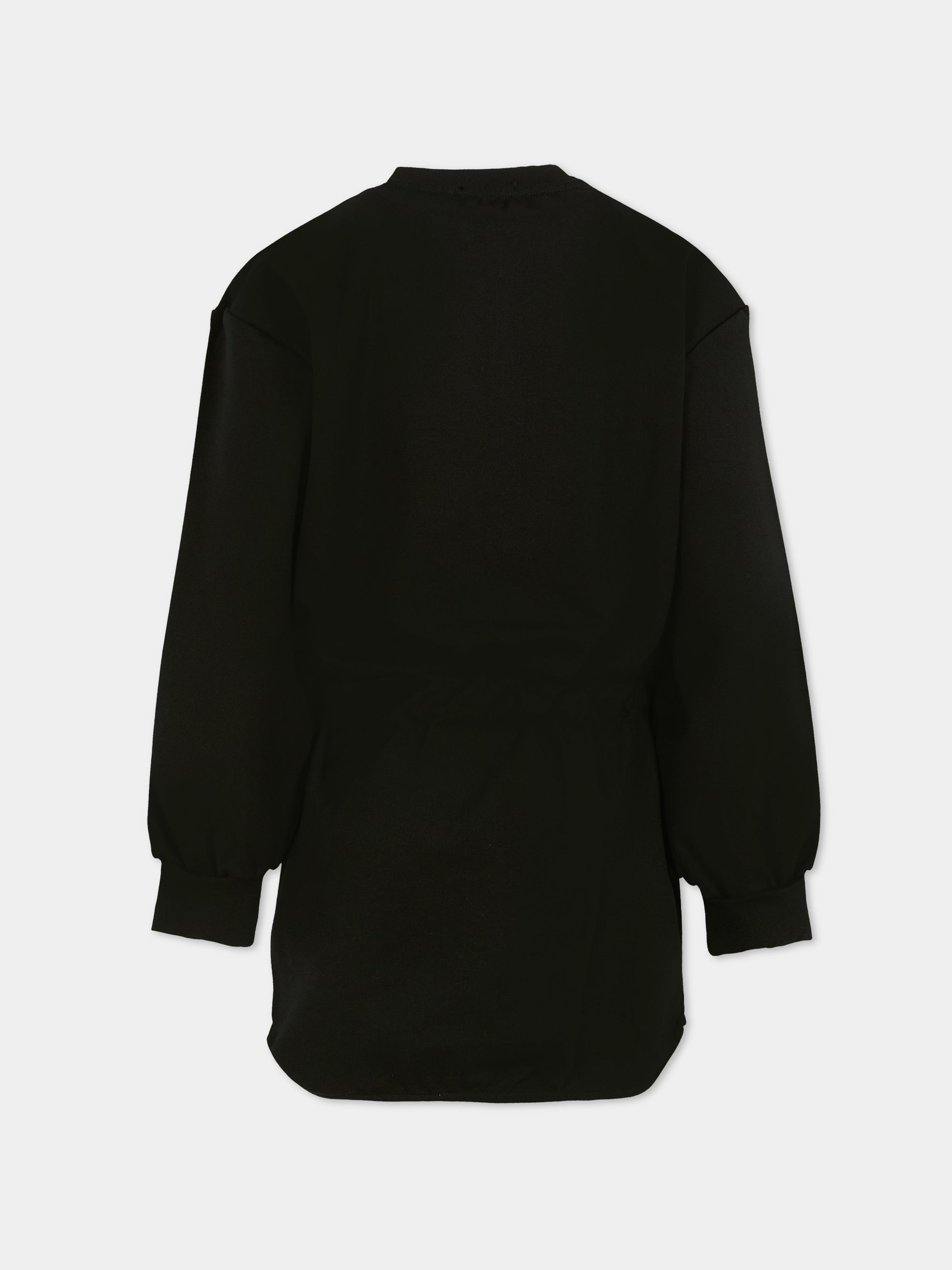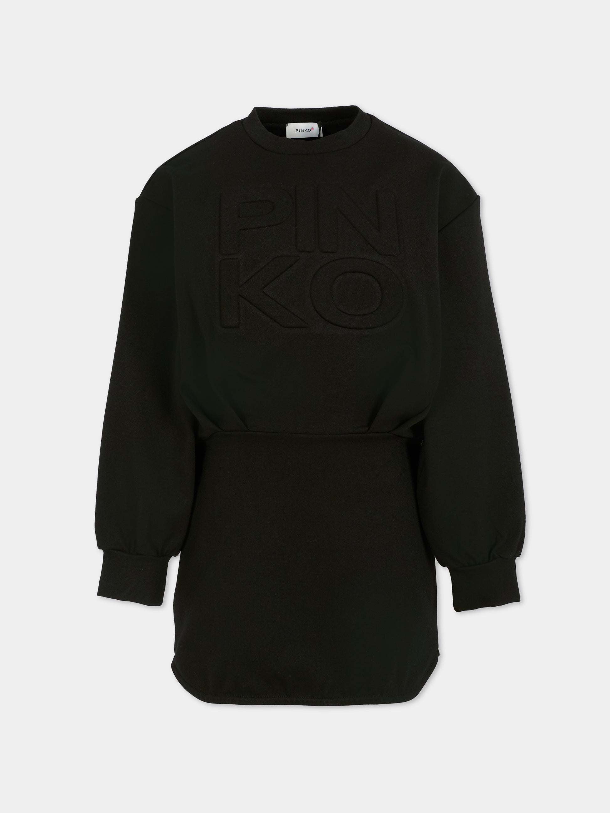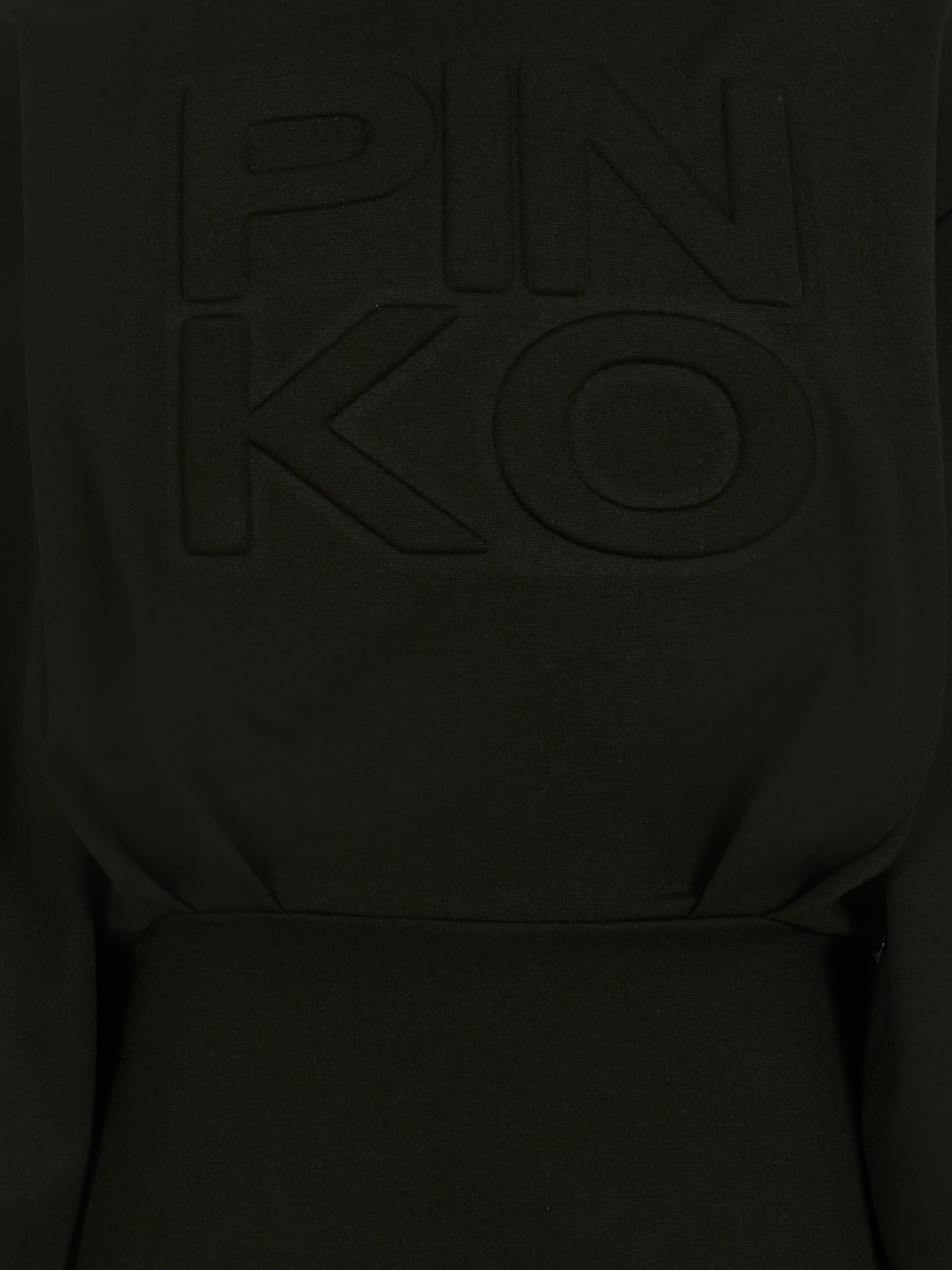 Colore: Nero Descrizione: Vestito nero a maniche lunghe, con girocollo ed elastico sul retro. È decorato con logo imbottito a rilievo sulla parte anteriore. Made in Italy Dettagli: 70% Viscosa, 25% Poliammide, 5% Elastan. Lavare a 30°C.