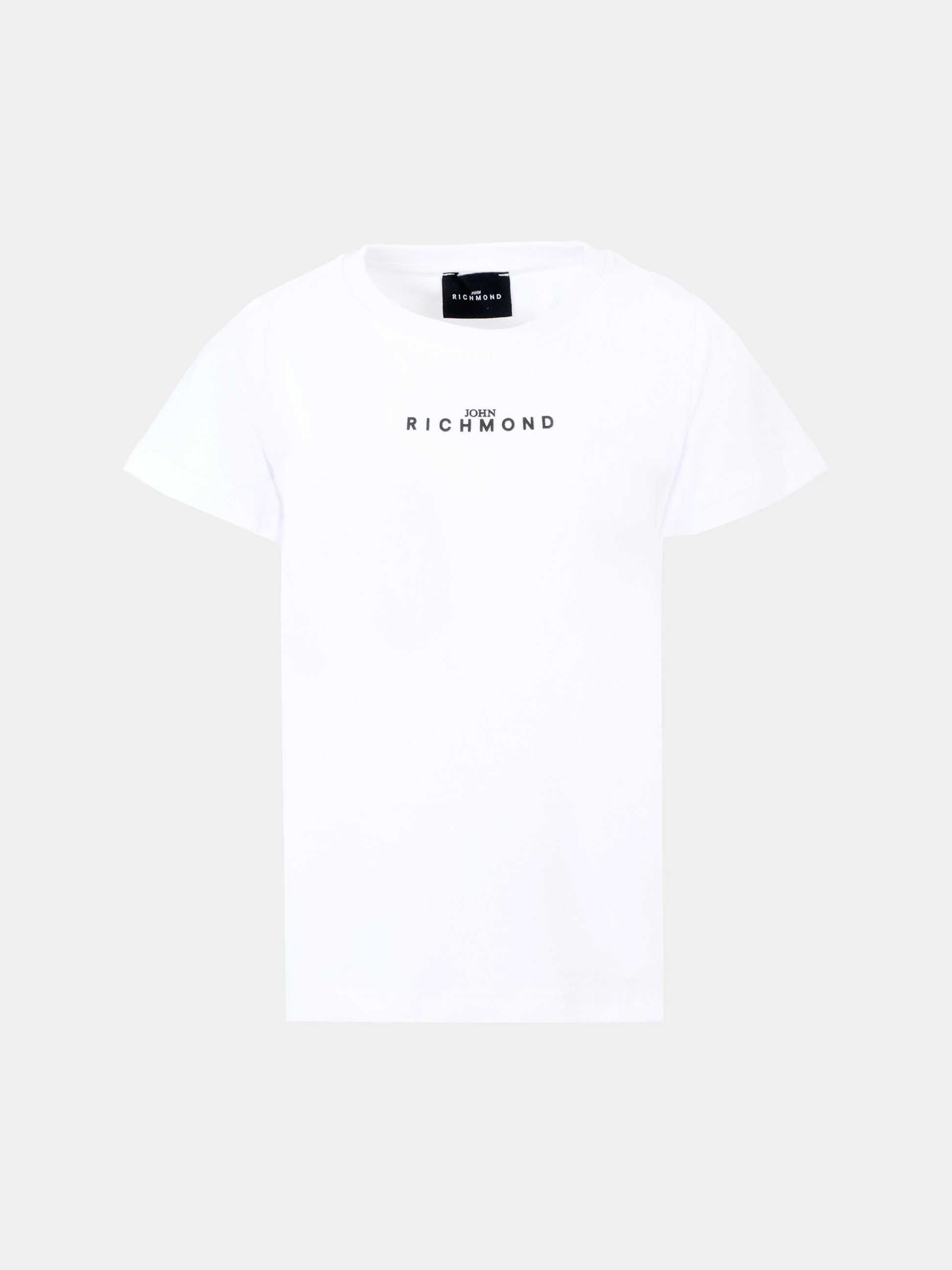 Colore: Bianco Descrizione: T-shirt bianca in cotone, con maniche corte e girocollo a costine. È decorata con logo nero gommato, sulla parte anteriore. Dettagli: 100% Cotone. Lavare a 30°C.