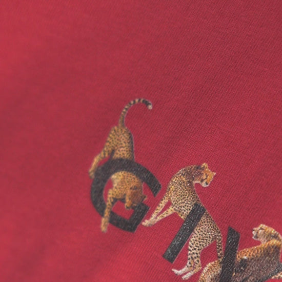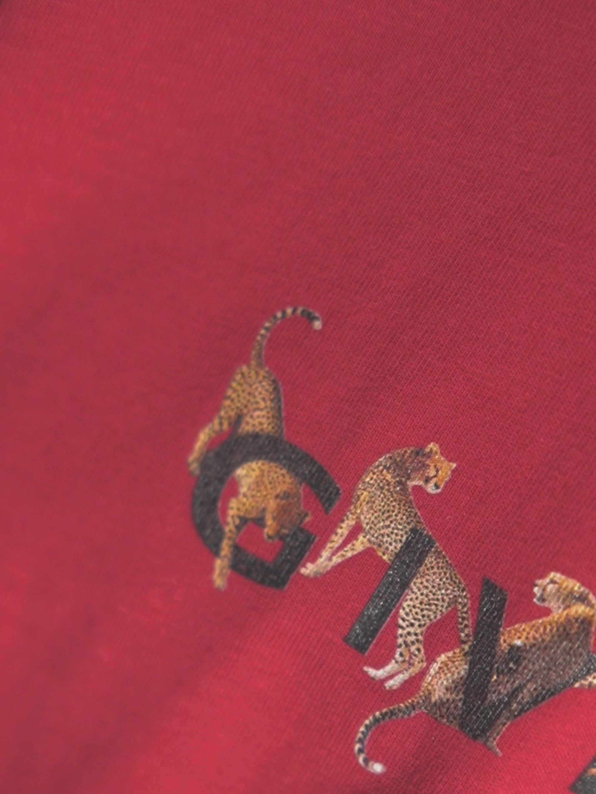 Colore: Bordeaux Descrizione: T-shirt bordeaux del luxury brand Givenchy Kids, realizzata in cotone, presenta maniche lunghe e girocollo a costine. È decorata con stampa logo Givenchy con stampa leopardo. Dettagli: 100% Cotone. Lavare a 30°C.