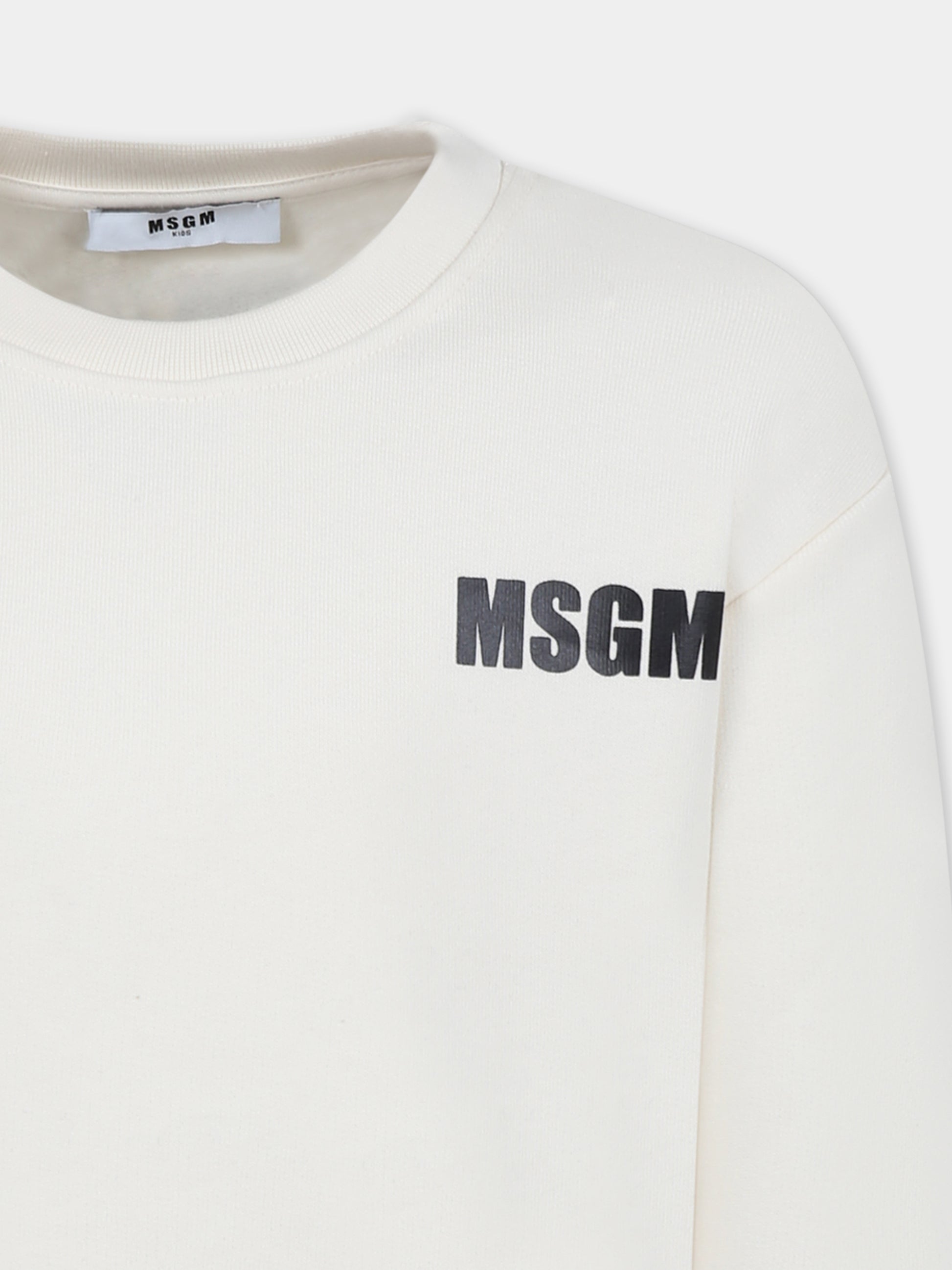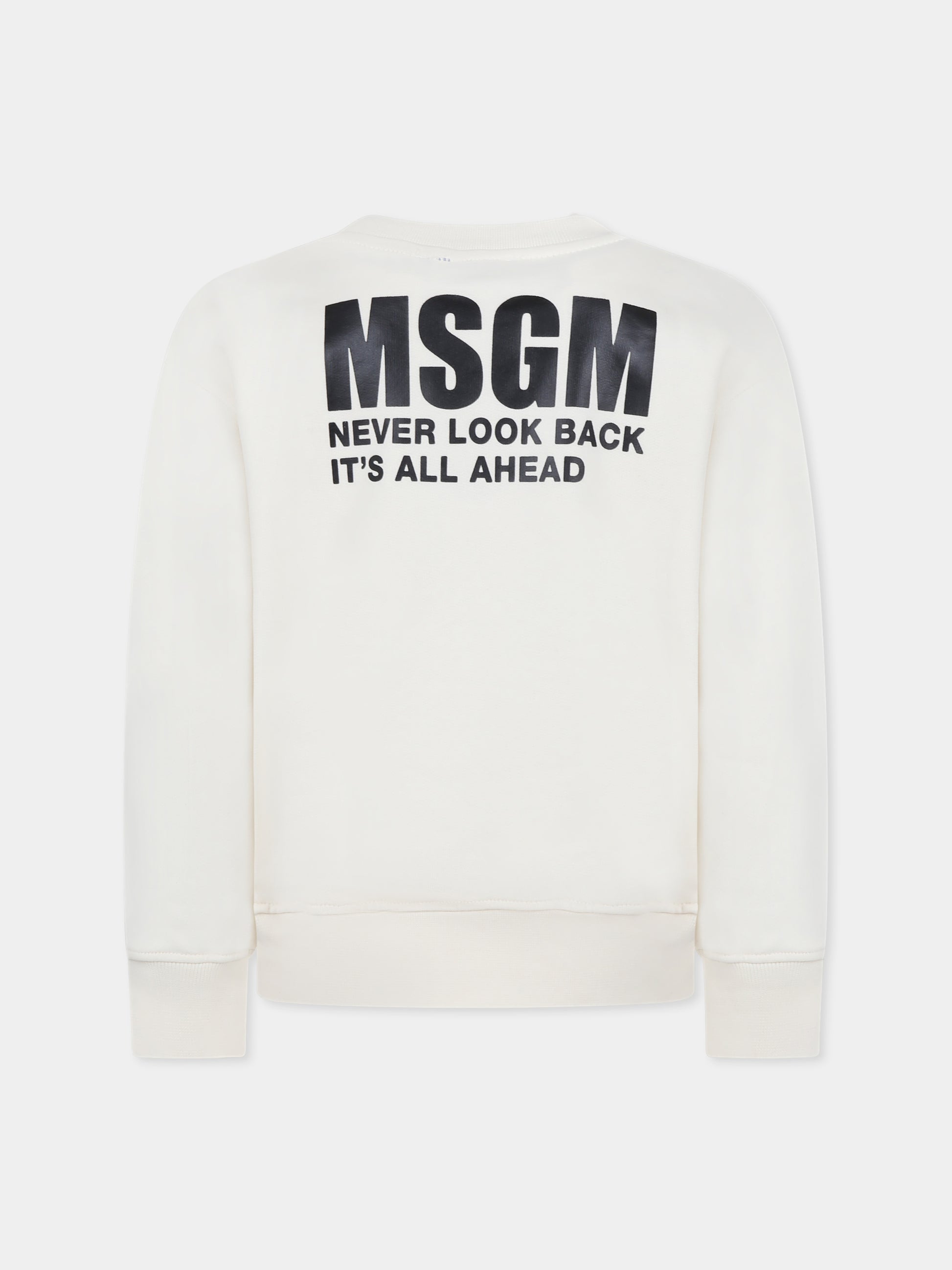 Colore: Avorio Descrizione: Felpa avorio in cotone felpato, a maniche lunghe, con girocollo, polsini e orlo a costine. È decorata con logo nero sul petto e con logo e scritta sul retro. Made in Italy Dettagli: 100% Cotone. Lavare a 30°C.
