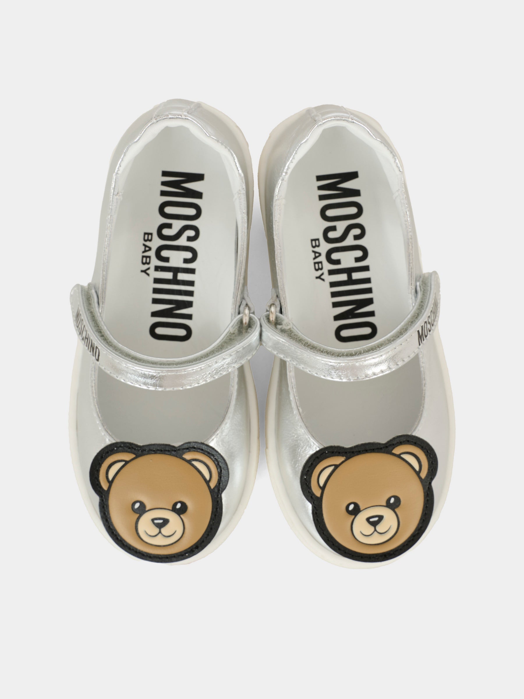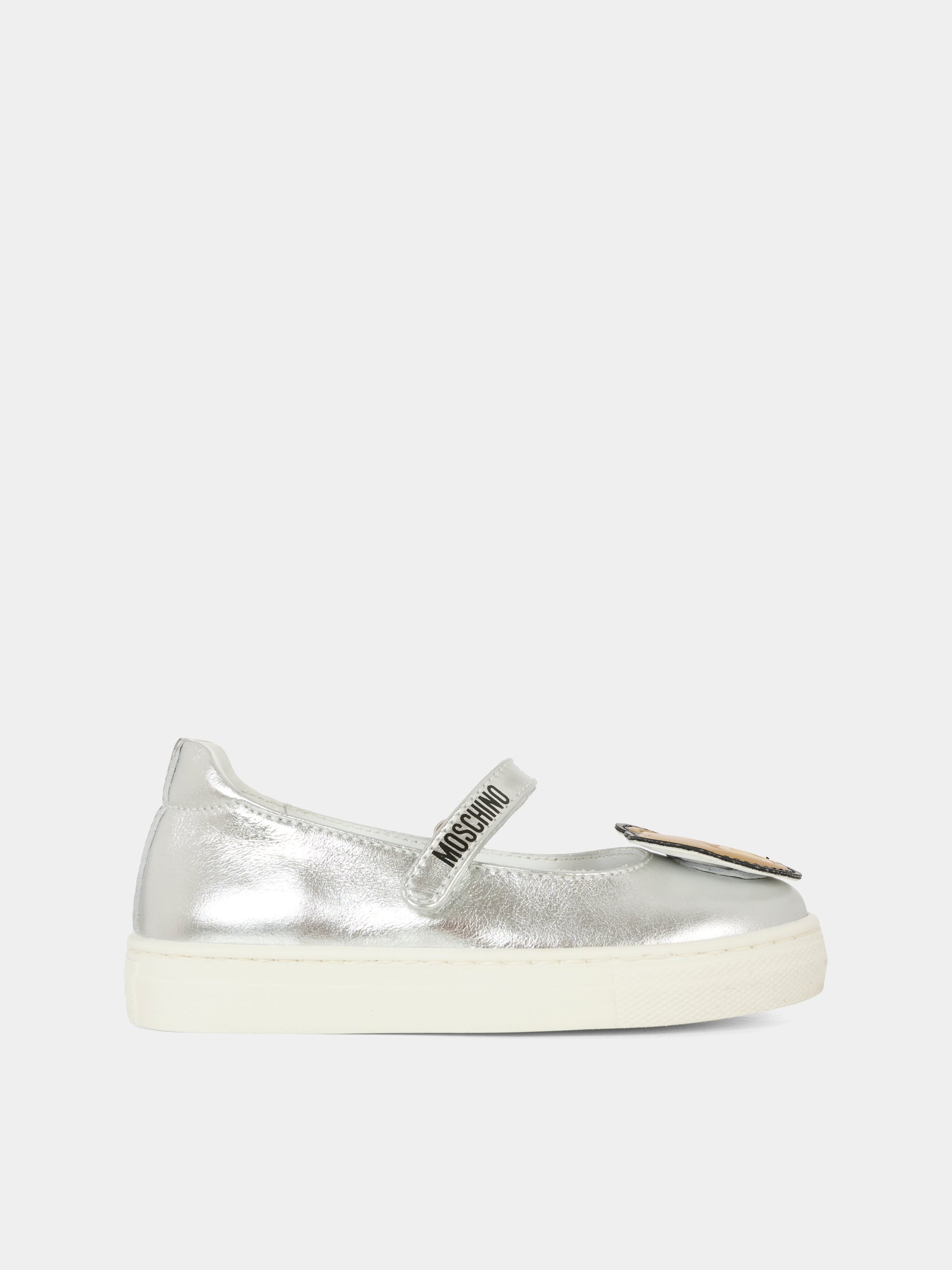 Silver ballet flats for baby girl and girl with Teddy Bear