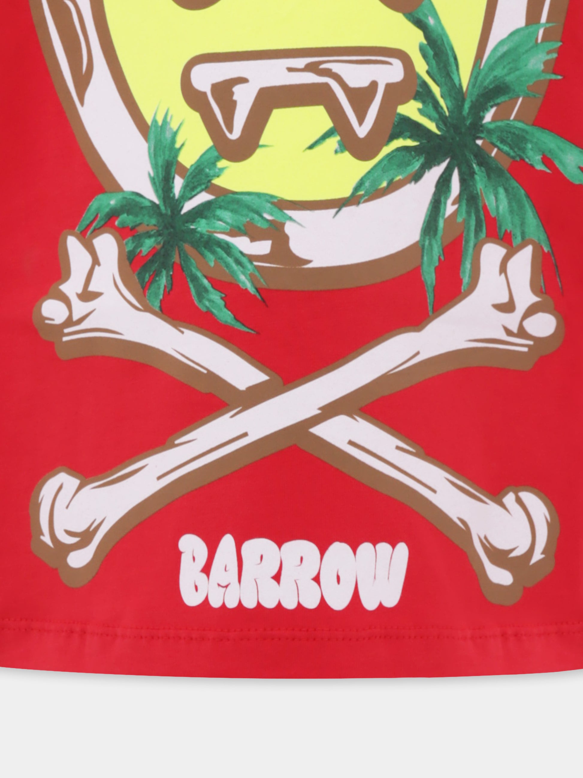 Colore: Rosso Descrizione: T-shirt rossa in cotone, con maniche corte e girocollo a costine. È decorata con iconico smile a forma di scheletro, palme e logo sulla parte anteriore. Dettagli: 100% Cotone. Lavare a 30°C.