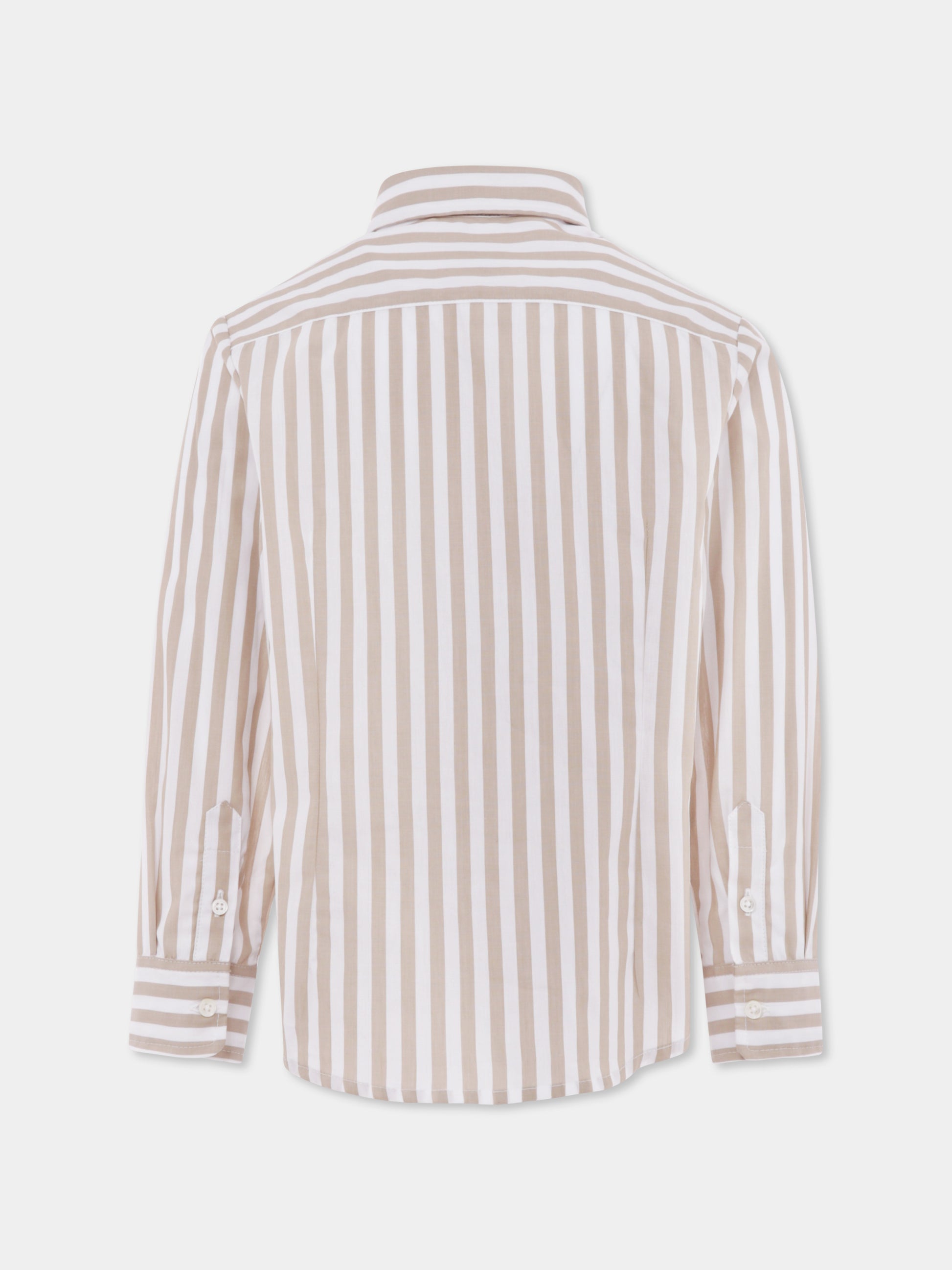 Colore: Beige Descrizione: Camicia beige a righe, in cotone, con maniche lunghe, colletto a punta e chiusura frontale con bottoni. È decorata con patch logata sulla parte anteriore. Dettagli: 100% Cotone. Lavare a 30°C.