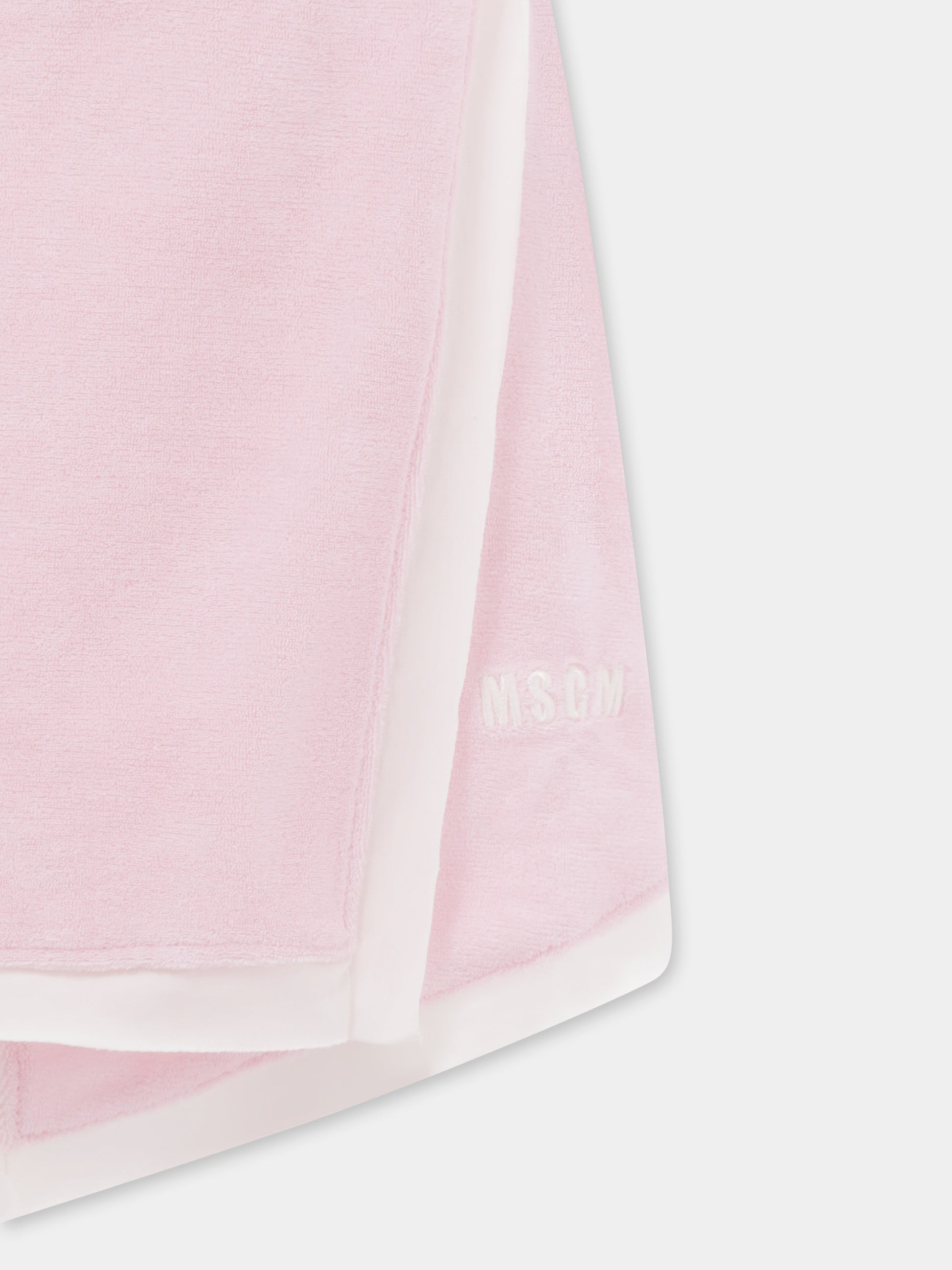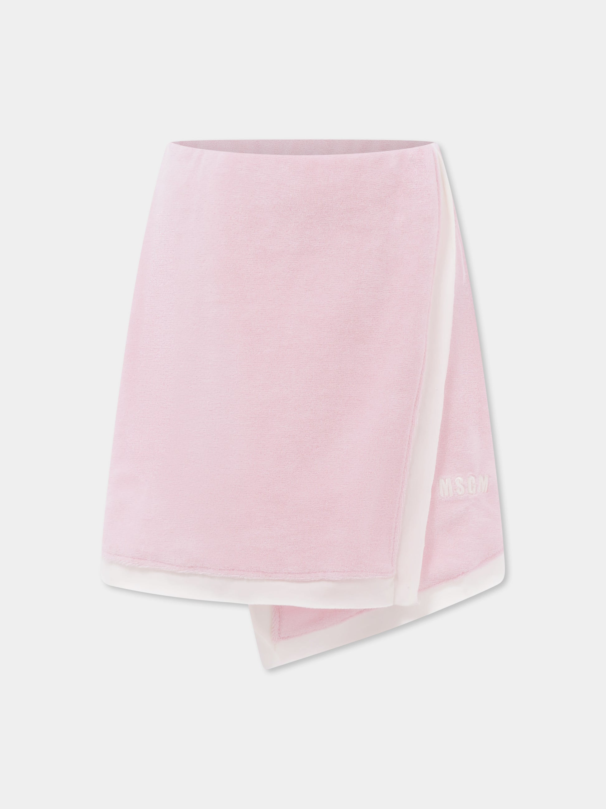 Colore: Rosa Descrizione: Gonna rosa asimmetrica in spugna, con vita elasticizzata e profili a contrasto. È decorata con logo ricamato sulla parte anteriore. Made in Italy Dettagli: 92% Cotone, 6% Poliammide, 2% Elastan. Lavare a 30°C.