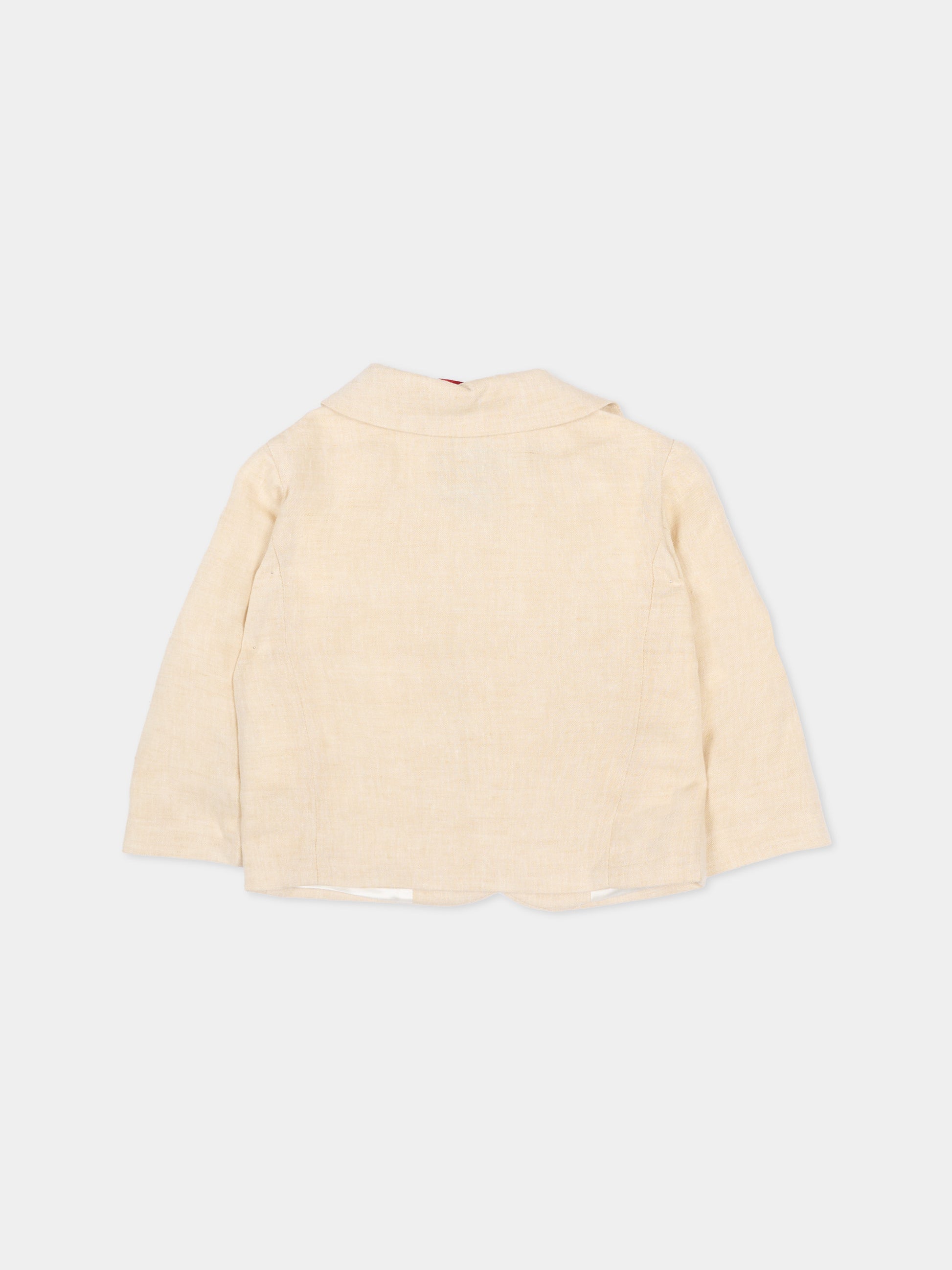 Beige jacket for baby boy with logo
