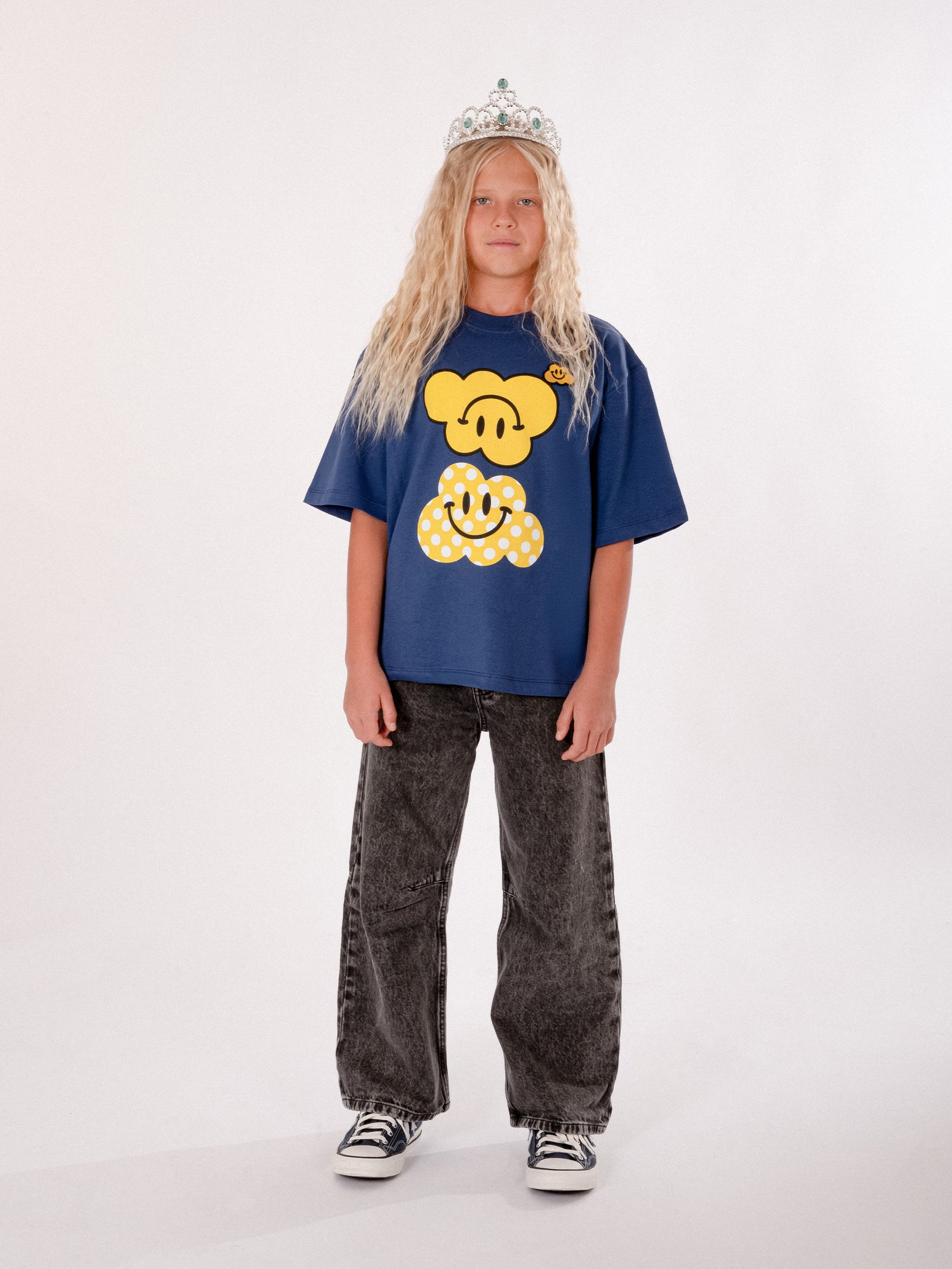 Colore: Blu Descrizione: T-shirt blu oversize, realizzata in jersey di cotone. Questo articolo fa parte della nuova capsule collection di Ghamye. Creato da Cesare Morisco, il brand ha come protagonista l'iconica nuvola gialla, simbolo di positività e felicità. La t-shirt presenta maniche corte e girocollo a costine; é decorata con patch a forma di nuvola, ricamata sul petto e con stampa nuvola gialla e nuvola a pois sulla parte anteriore. Eventuali irregolarità nel colore o nella stampa non sono da considerarsi difetto ma caratteristica del capo stesso. Dettagli: 100% Cotone. Lavare a mano.