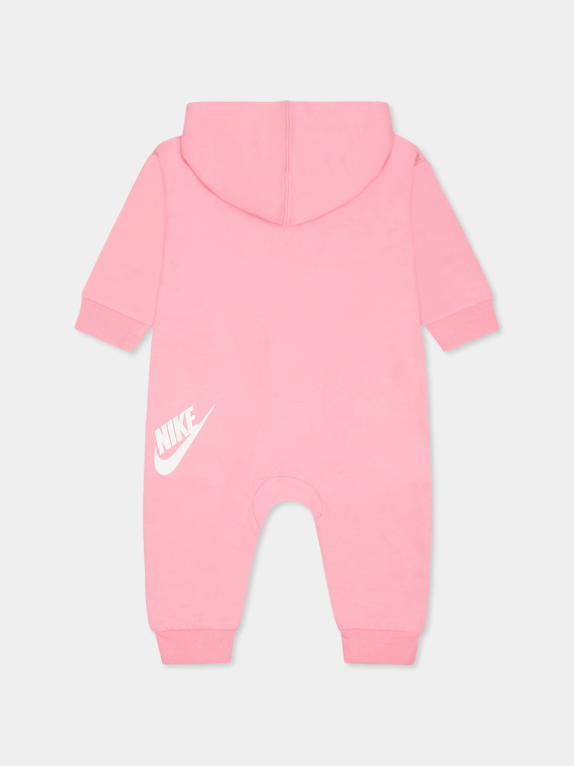 Colore: Rosa Descrizione: Tutina rosa, in cotone, con maniche lunghe, cappuccio, chiusura con zip, sulla parte anteriore. E' decorata con logo bianco, sulla parte anteriore e posteriore. Dettagli: 60%Cotone. 40%Poliestere. Lavare a 30°C.