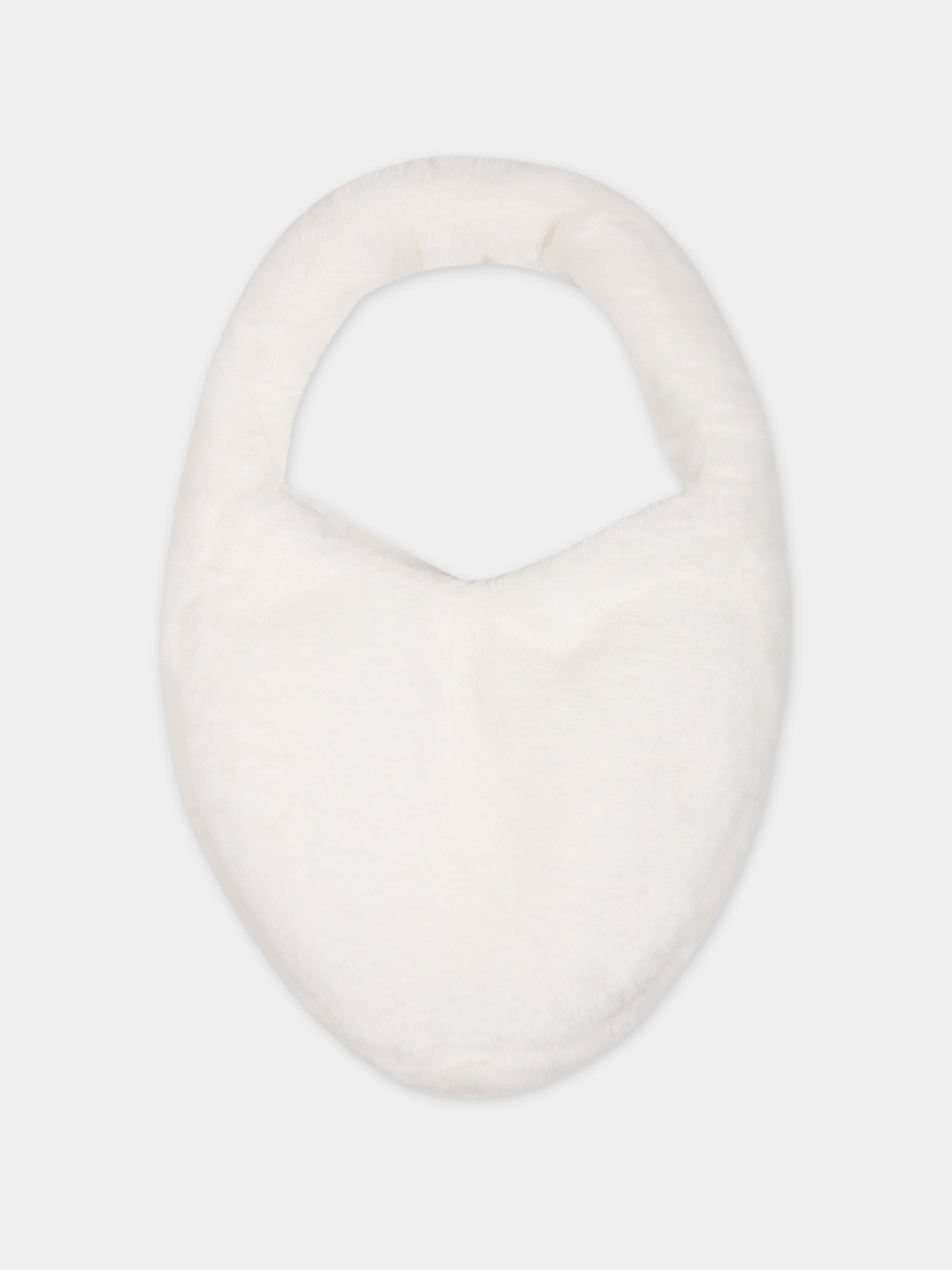 Colore: Bianco Descrizione: Borsa a mano bianca a forma di cuore in ecopelliccia, foderata, con manico e chiusura con bottone magnetico. E' decorata con logo in metallo cucito sulla parte anteriore. 27x18x5 Dettagli: 100% Poliestere. Lavare a secco.