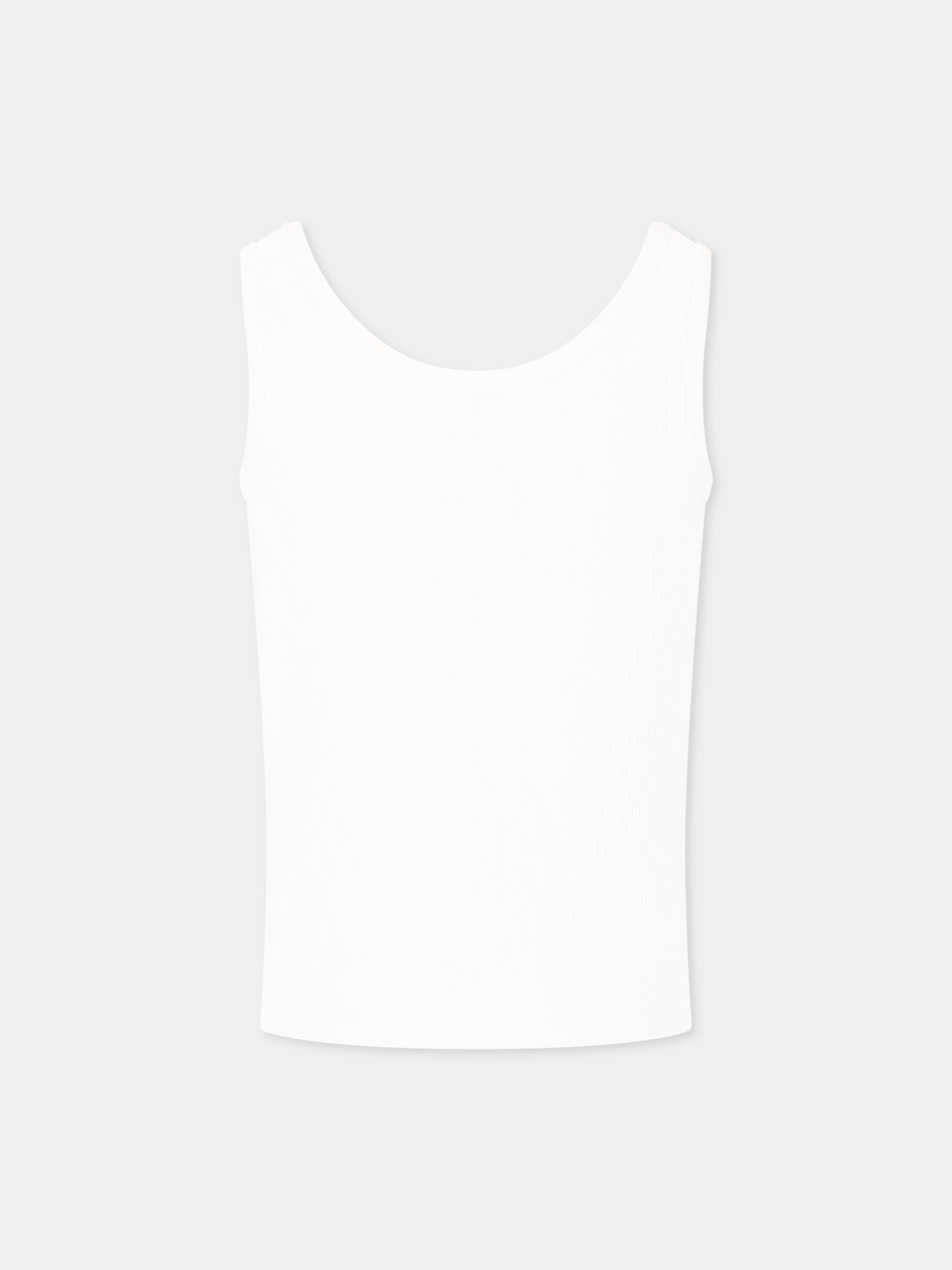 Colore: Bianco Descrizione: Canotta bianca a costine, con scollo rotondo. È decorata con patch logato sul petto. Dettagli: 57% Cotone, 38% Poliestere, 5% Elastan. Lavare a 30°C.