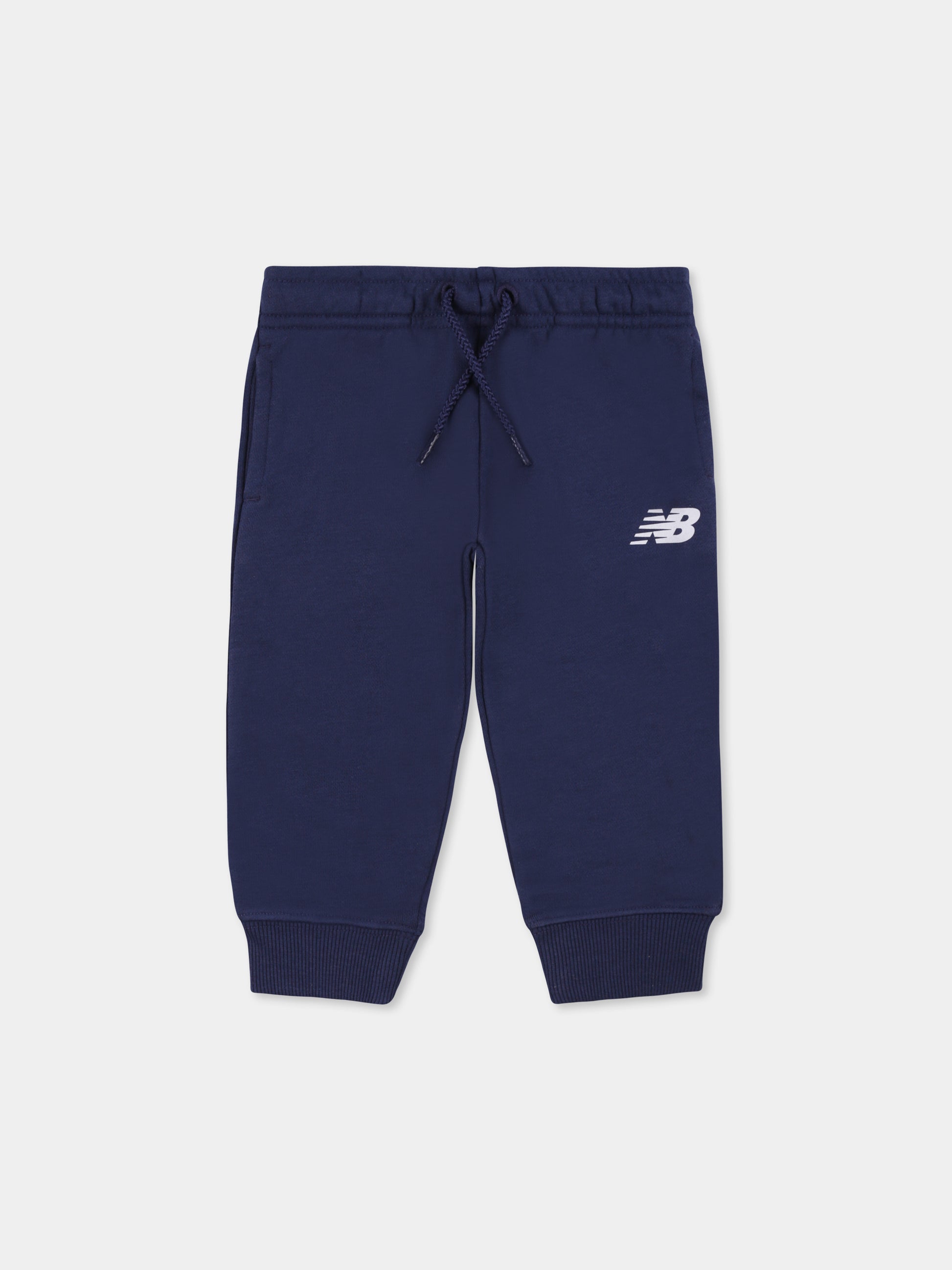 Colore: Blu Descrizione: Pantaloni blu in misto cotone garzato, con vita elasticizzata, coulisse, tasche laterali, tasca sul retro e caviglie a costine. Sono decorati con logo su una gamba. Dettagli: 60% Cotone, 40% Poliestere. Lavare a 30°C.