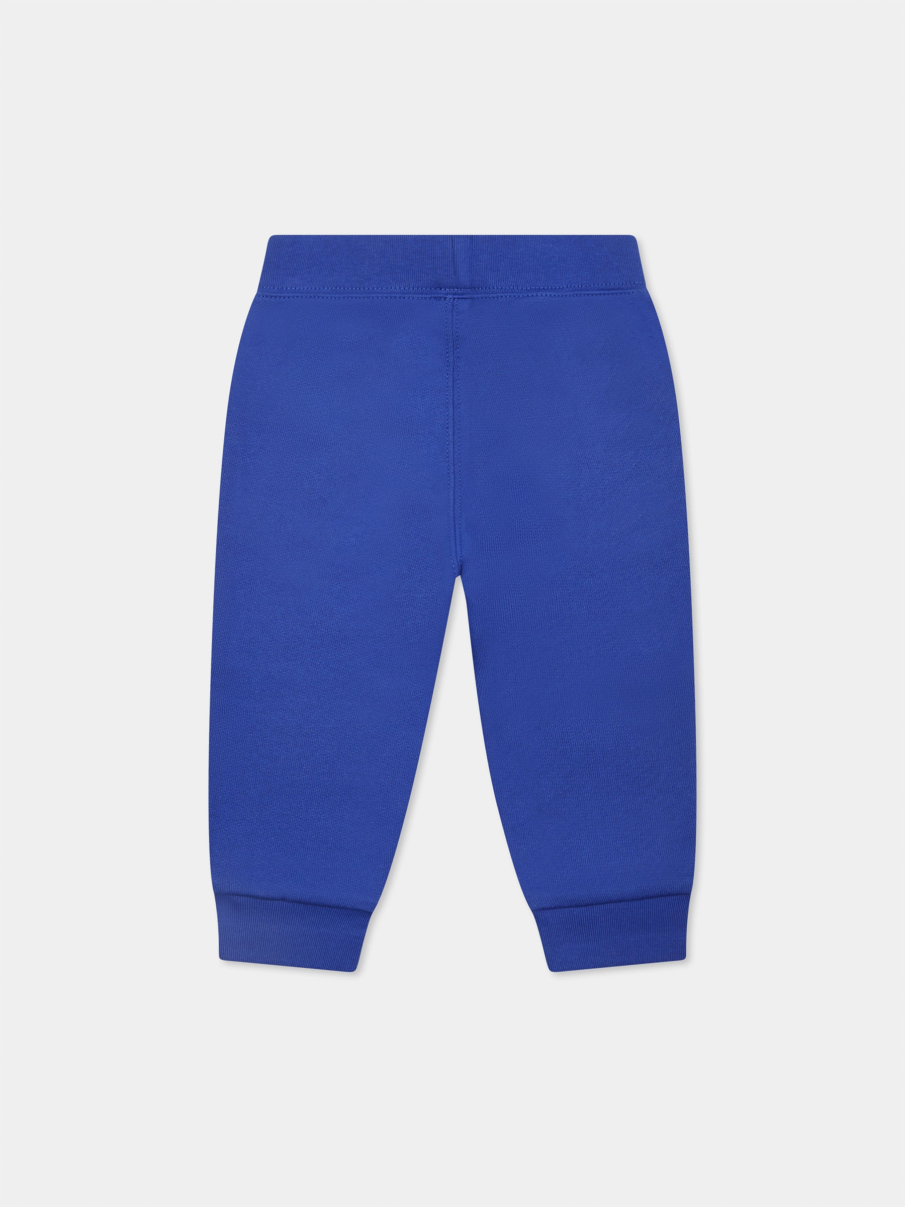 Colore: Blu Descrizione: Pantaloni blu in cotone felpato, con elastico in vita, tasche laterali e caviglie a costine. Sono decorati con iconico cavallino verde ricamato sulla parte anteriore. Dettagli: 84% Cotone, 16% Poliestere. Lavare a 30°C.