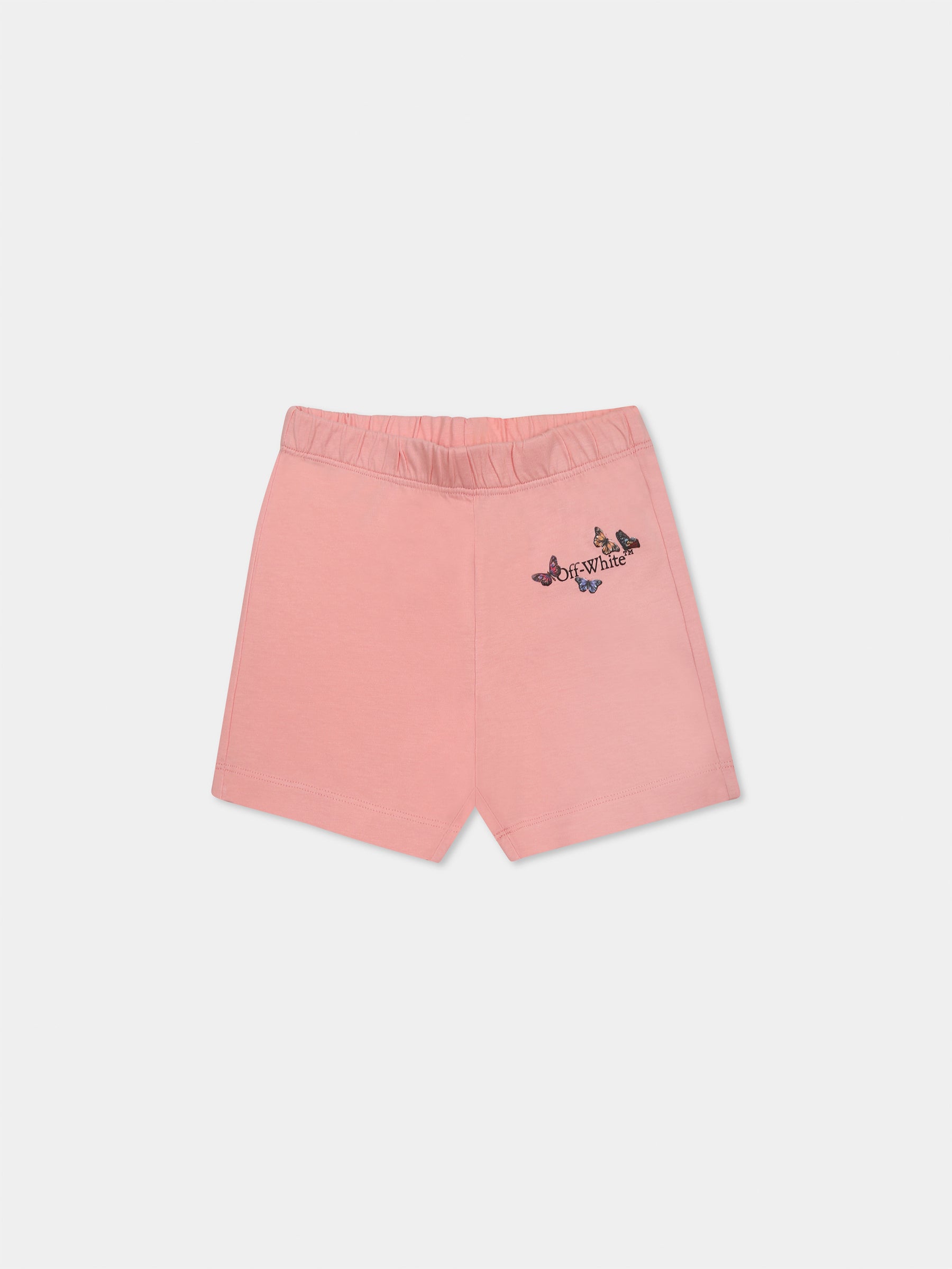 Colore: Rosa Descrizione: Shorts rosa in cotone, con vita elasticizzata. Sono decorati con logo e stampa farfalle, su una gamba. Dettagli: 100% Cotone. Lavare a 30°C.