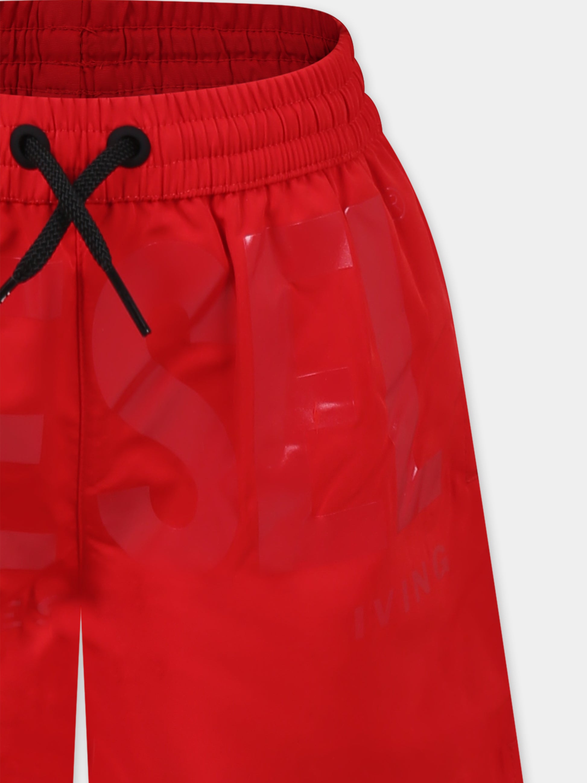Colore: Rosso Descrizione: Boxer mare rosso con vita elasticizzata, coulisse, tasche laterali e tasca sul retro. È decorato con logo frontale. Dettagli: 100% Poliestere. Lavare a mano