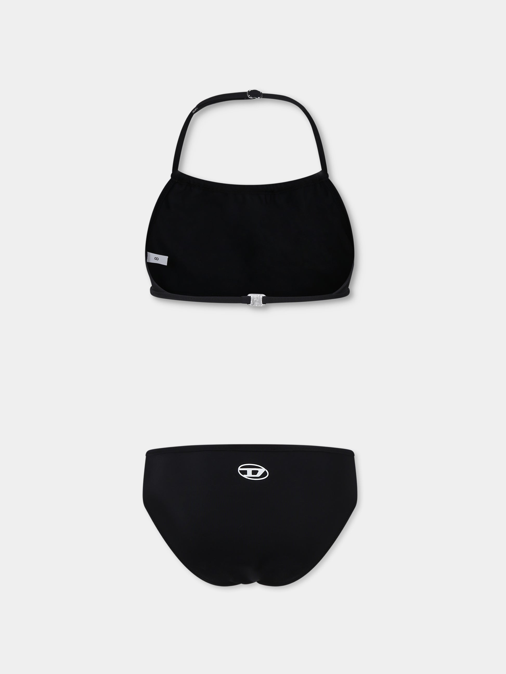Colore: Nero Descrizione: Bikini nero composto da top e slip da bagno; top con spalline regolabili e gancio sul retro. È decorato con logo bianco sulla parte anteriore e posteriore. Dettagli: 82% Poliestere, 18% Elastan. Lavare a 30°C.