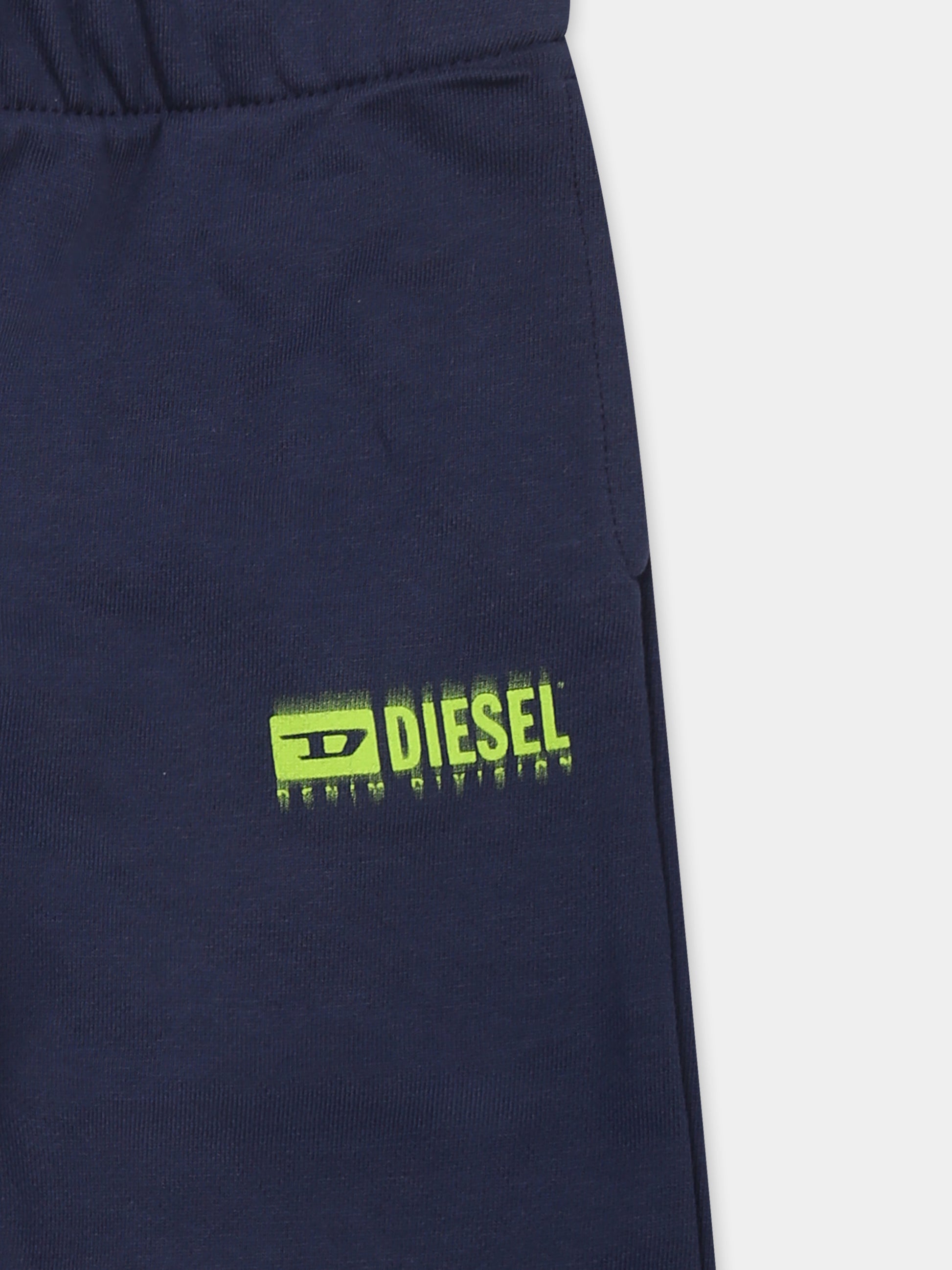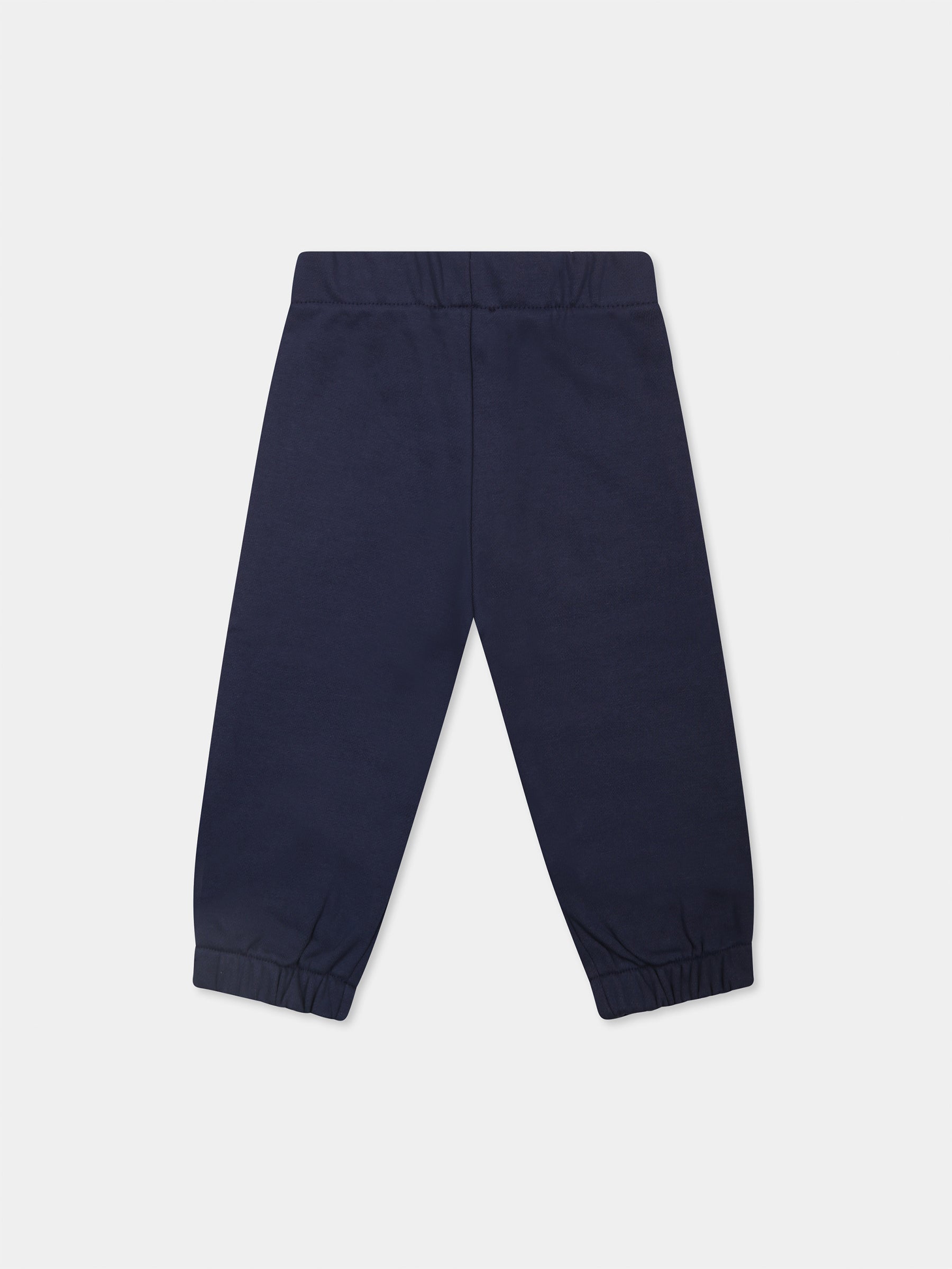 Colore: Blu Descrizione: Pantaloni blu in cotone garzato, con tasche laterali, vita e caviglie elasticizzate. Sono decorati con logo giallo, dall' effetto sbiadito, stampato sulla parte anteriore. Dettagli: 100% Cotone. Lavare a 30°C.
