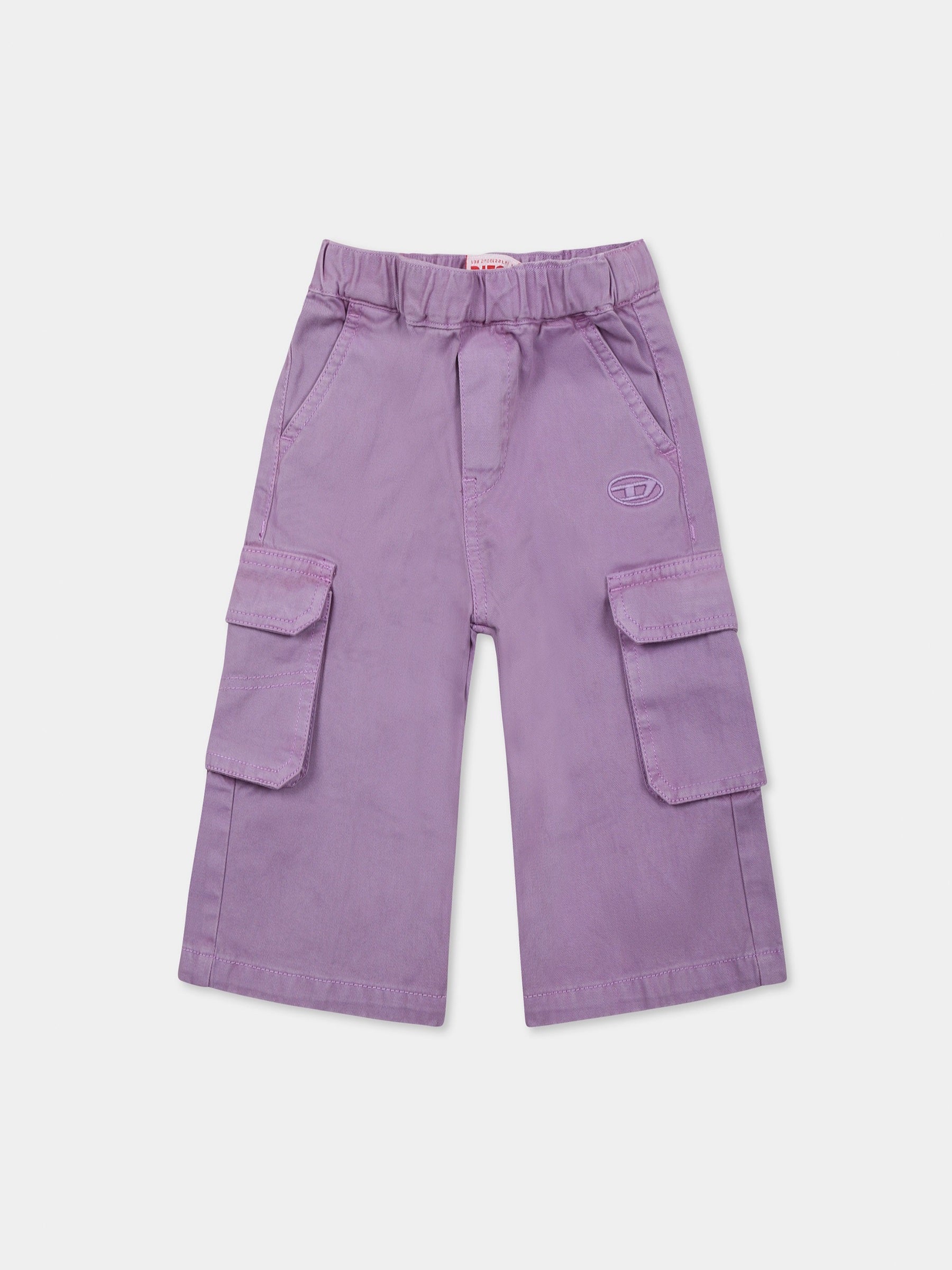 Colore: Viola Descrizione: Pantaloni casual viola in cotone, con vita elasticizzata, tasche laterali e tasche cargo sui lati. Sono decorati con logo ricamato sul lato. Dettagli: 100% Cotone. Lavare a 30°C.