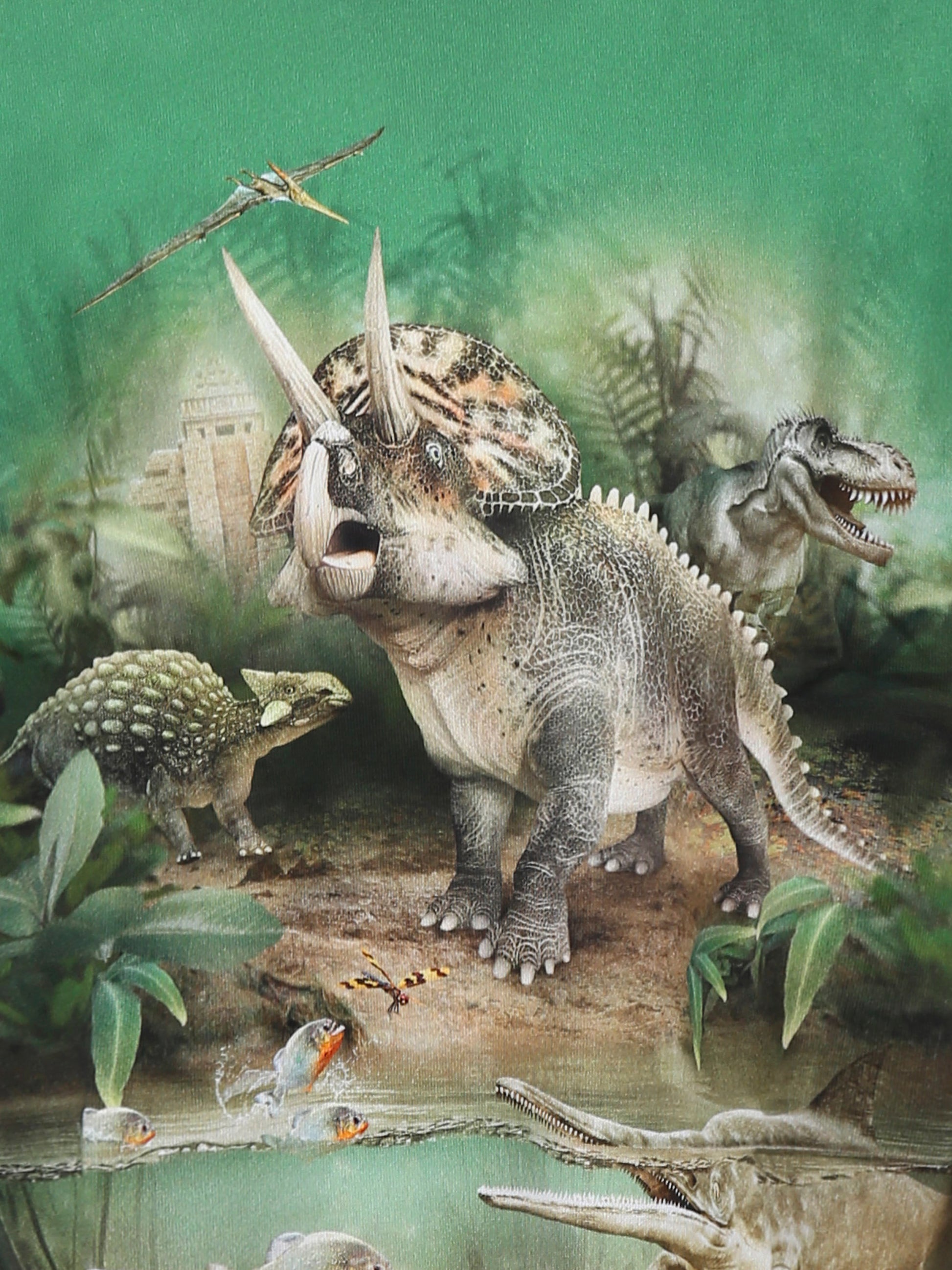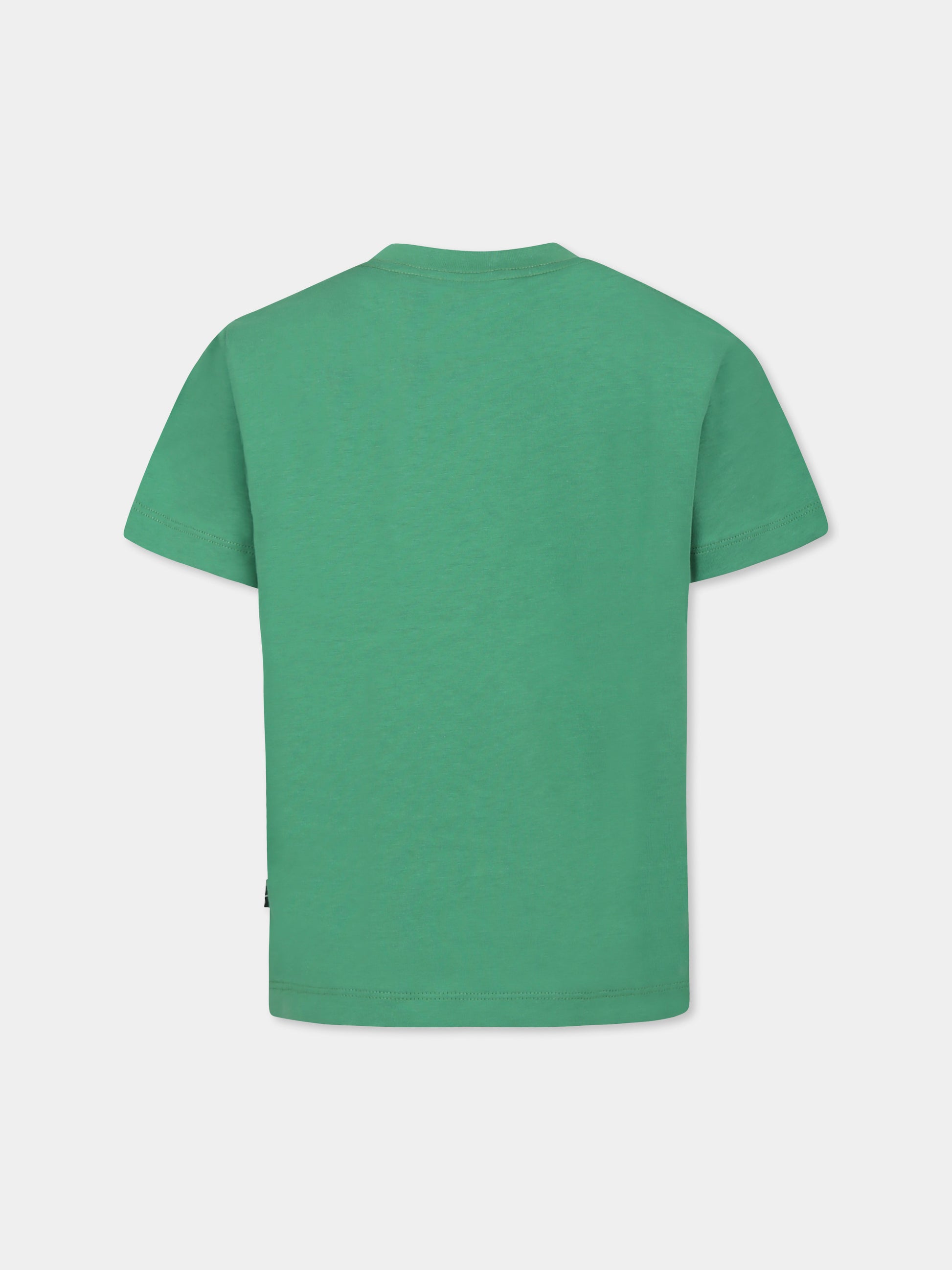 Colore: Verde Descrizione: T-shirt verde in cotone organico certificato GOTS, con maniche corte e girocollo a costine. È decorata con stampa giaguaro sulla parte anteriore e posteriore. Dettagli: 100% Cotone organico. Lavare a 30°C.
