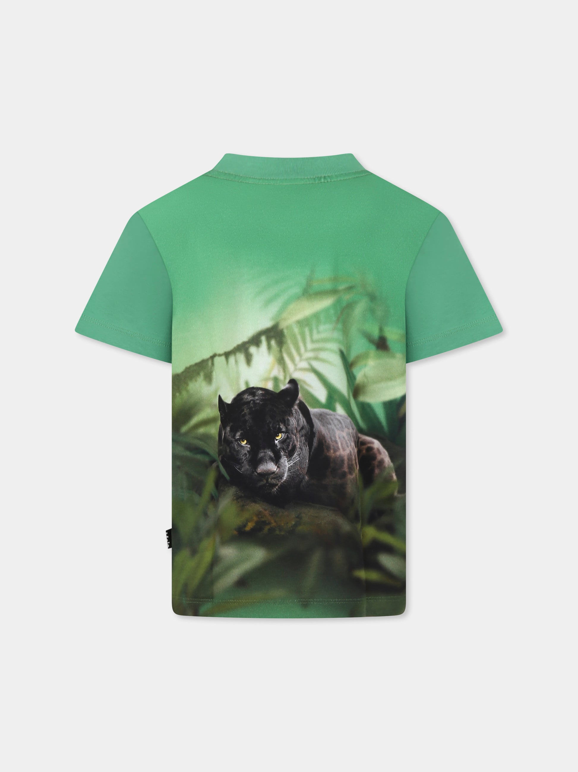 Colore: Verde Descrizione: T-shirt verde in cotone organico certificato GOTS, con maniche corte e girocollo a costine. È decorata con stampa dinosauri sulla parte anteriore. Dettagli: 100% Cotone organico. Lavare a 40°C.