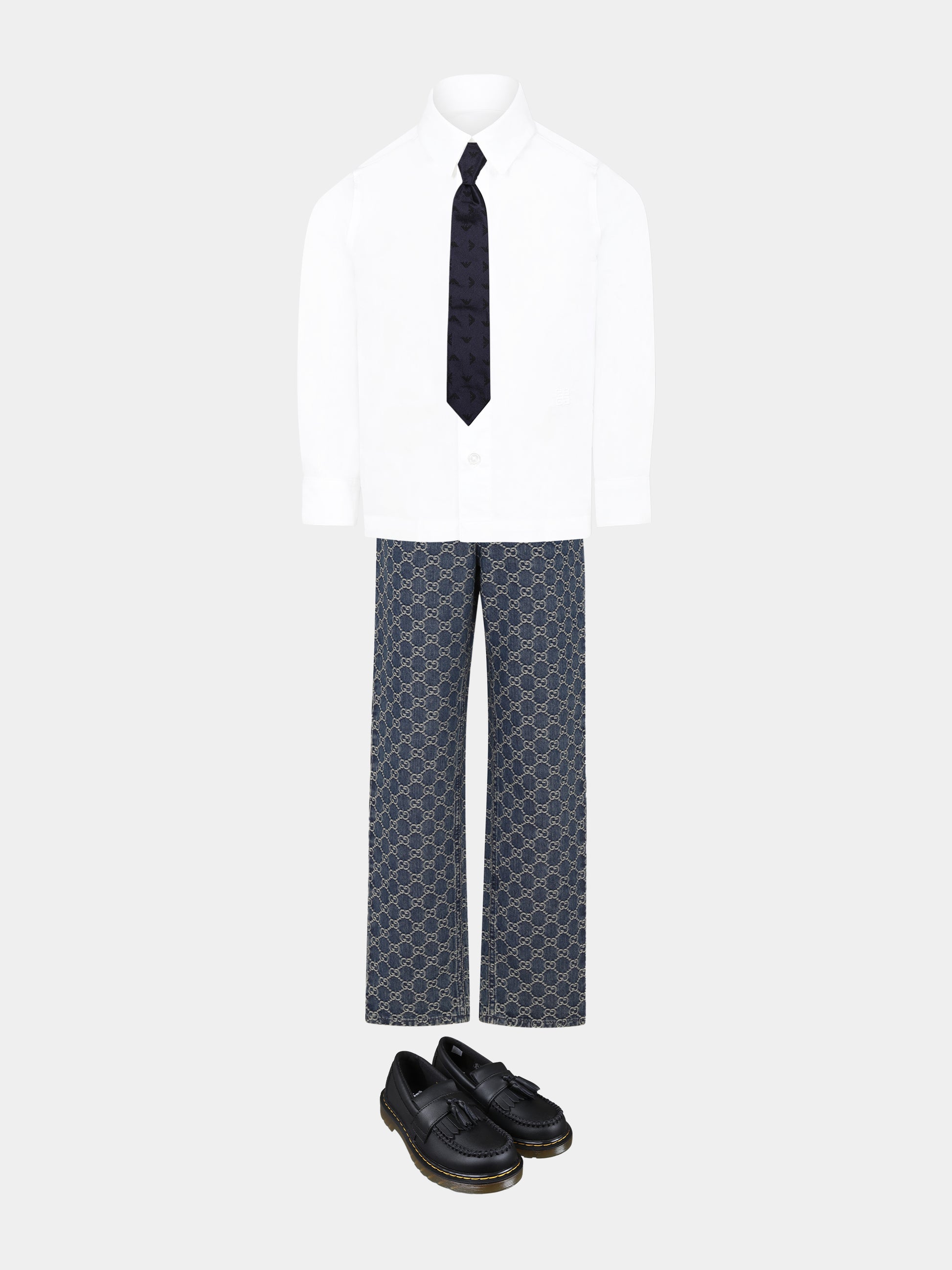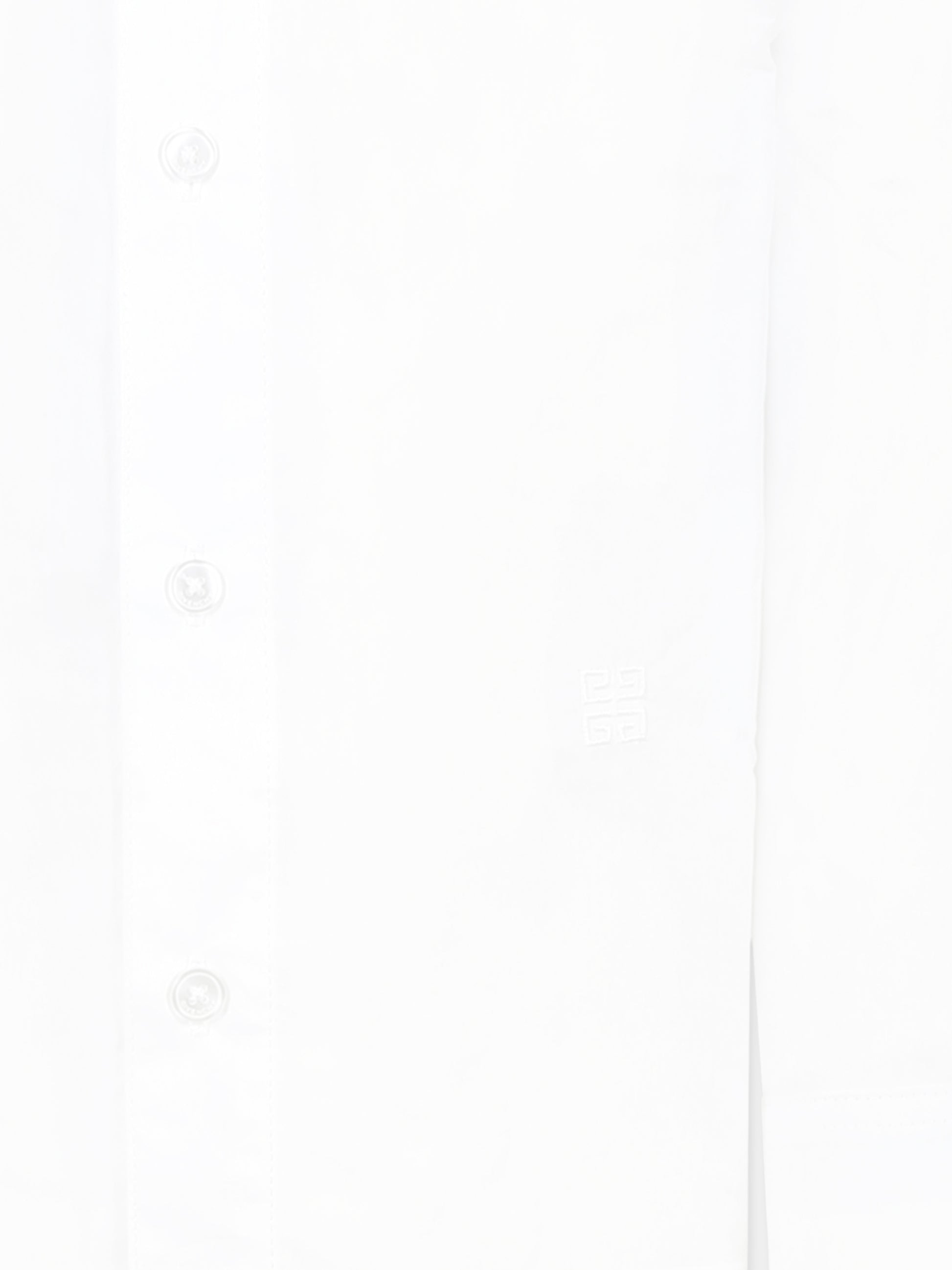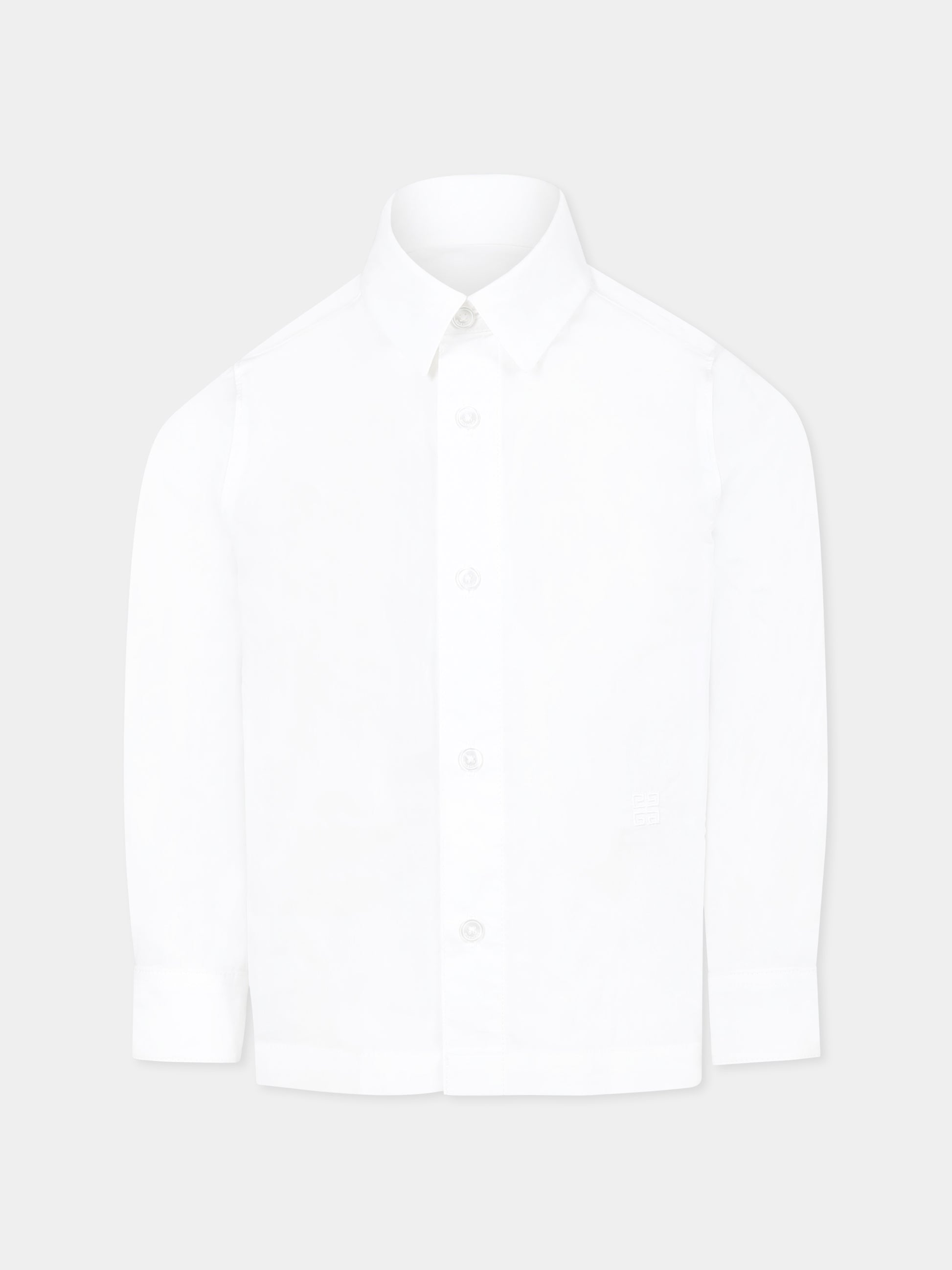 Colore: Bianco Descrizione: Camicia bianca del brand francese Givenchy Kids, in cotone, a maniche lunghe, con colletto classico e chiusura frontale con bottoni. È decorata con iconico motivo 4G ricamato sulla parte anteriore. Dettagli: 100% Cotone. Lavare a 30°C.