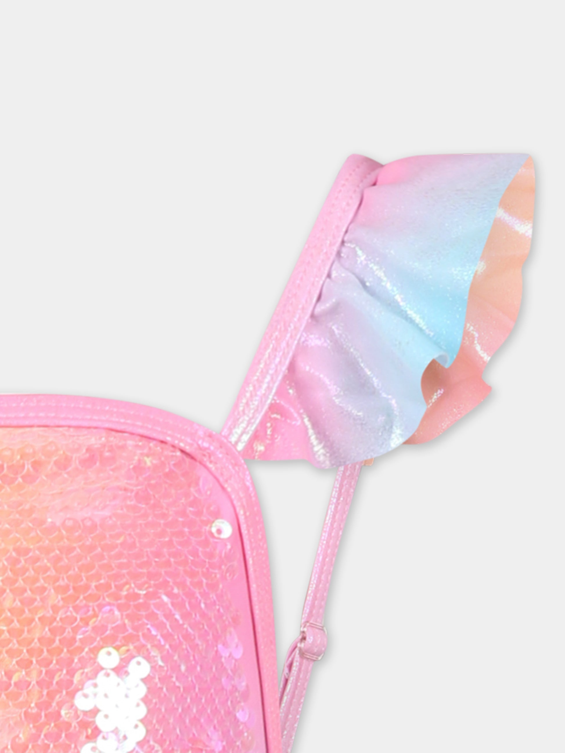 Colore: Multicolor Descrizione: Costume intero multicolor, con spalline regolabili con rouche sulle spalle e scollo sul retro. È decorato con paillettes sulla parte anteriore. Dettagli: 85% Poliestere, 15% Elastan. Lavare a 30°C.