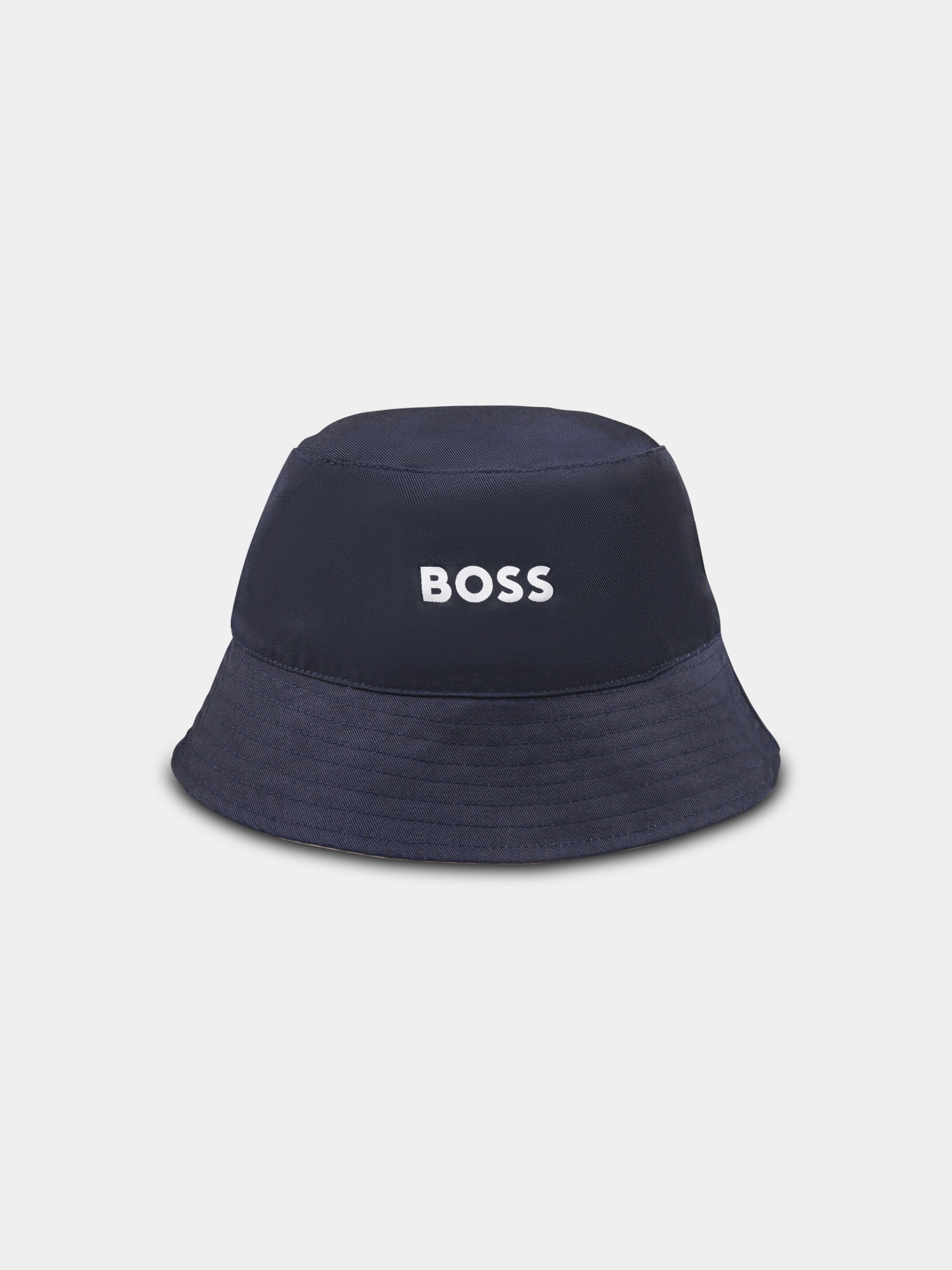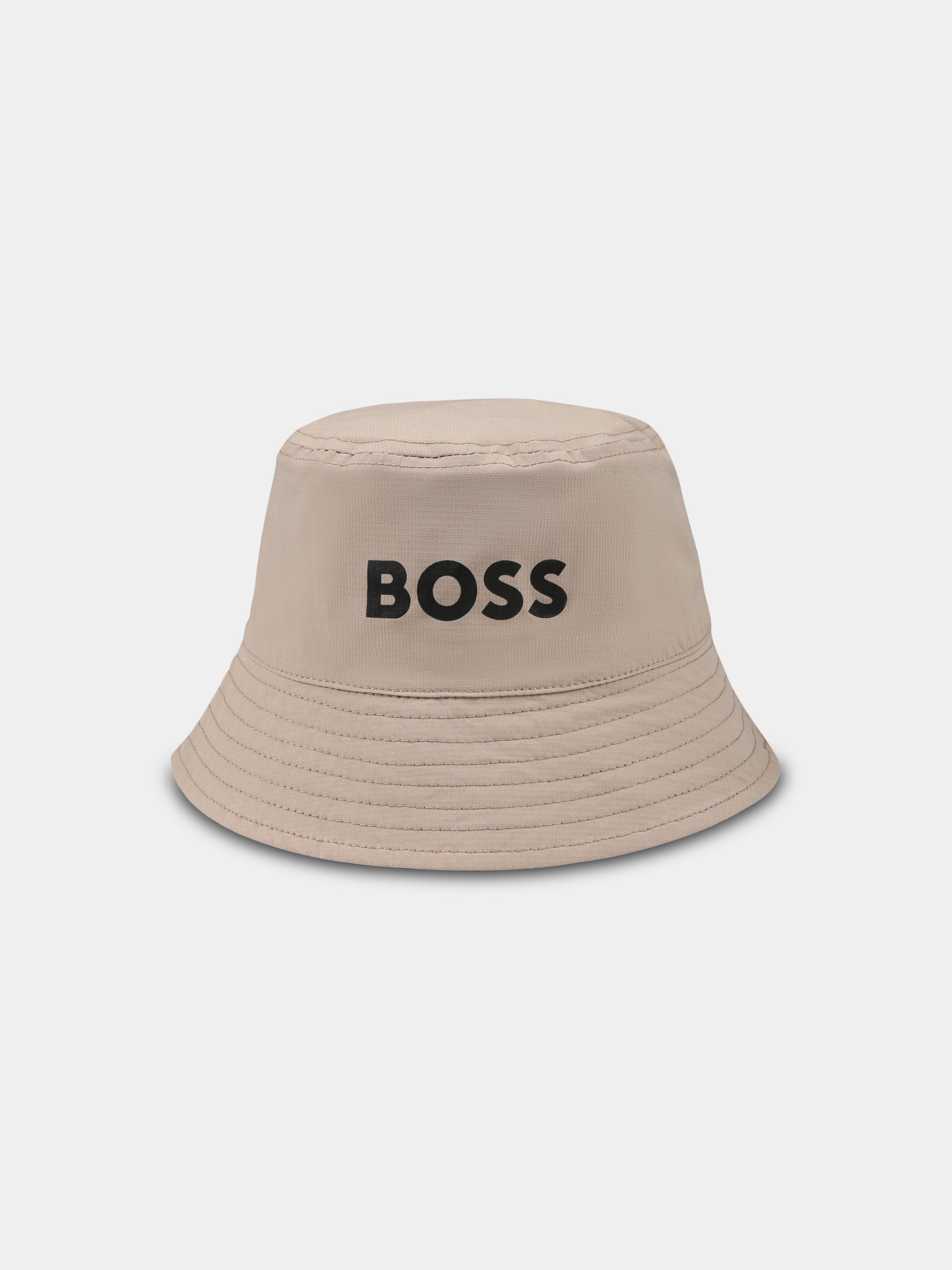 Beige reversible cloche for boy with logo