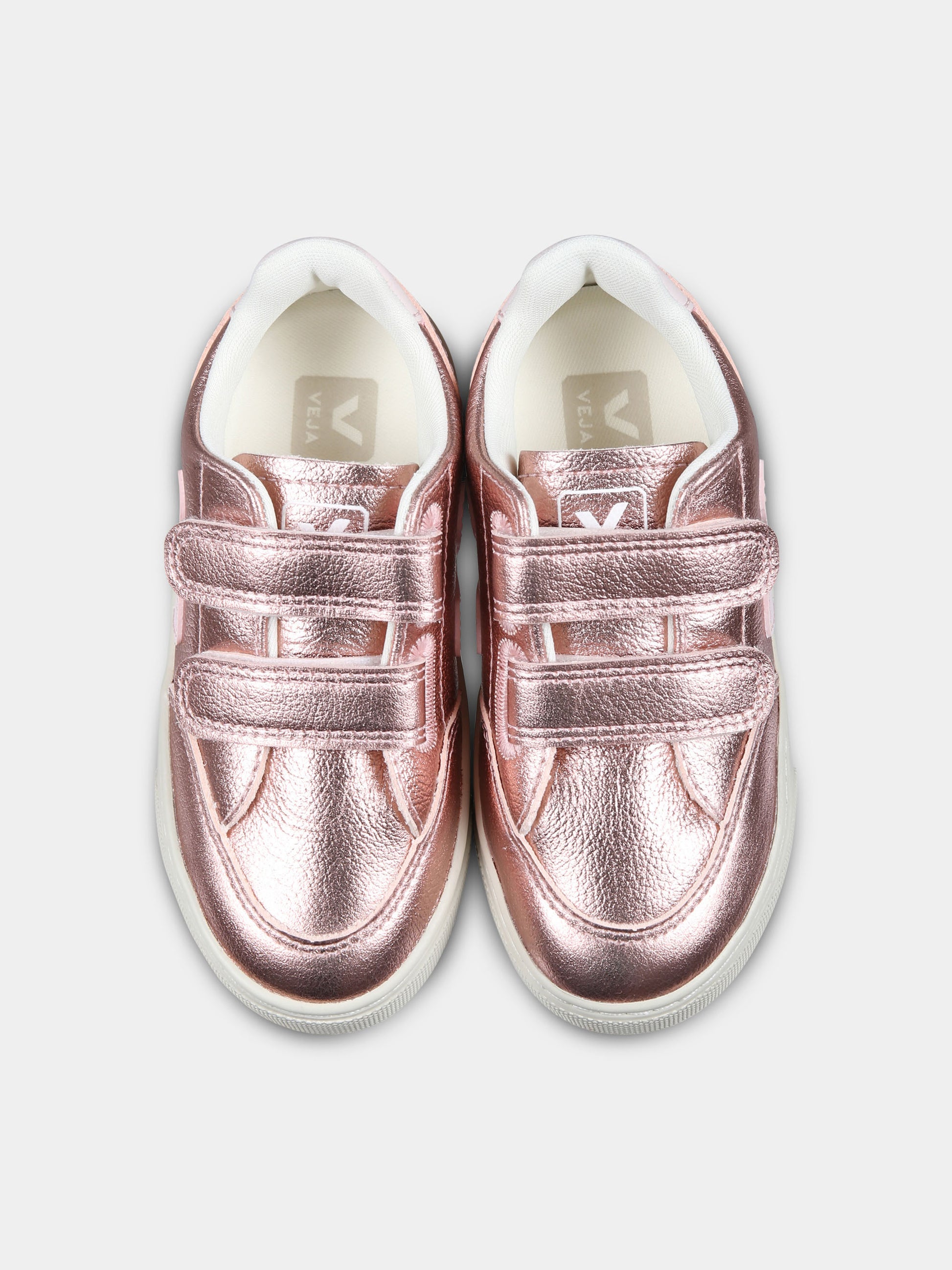 Colore: Rosa Descrizione: Sneakers rosa metalizzate in pelle chromefree, con suola in gomma, chiusura a strappo e punta tonda. Sono decorate con logo sui lati. Dettagli: 100% Pelle.