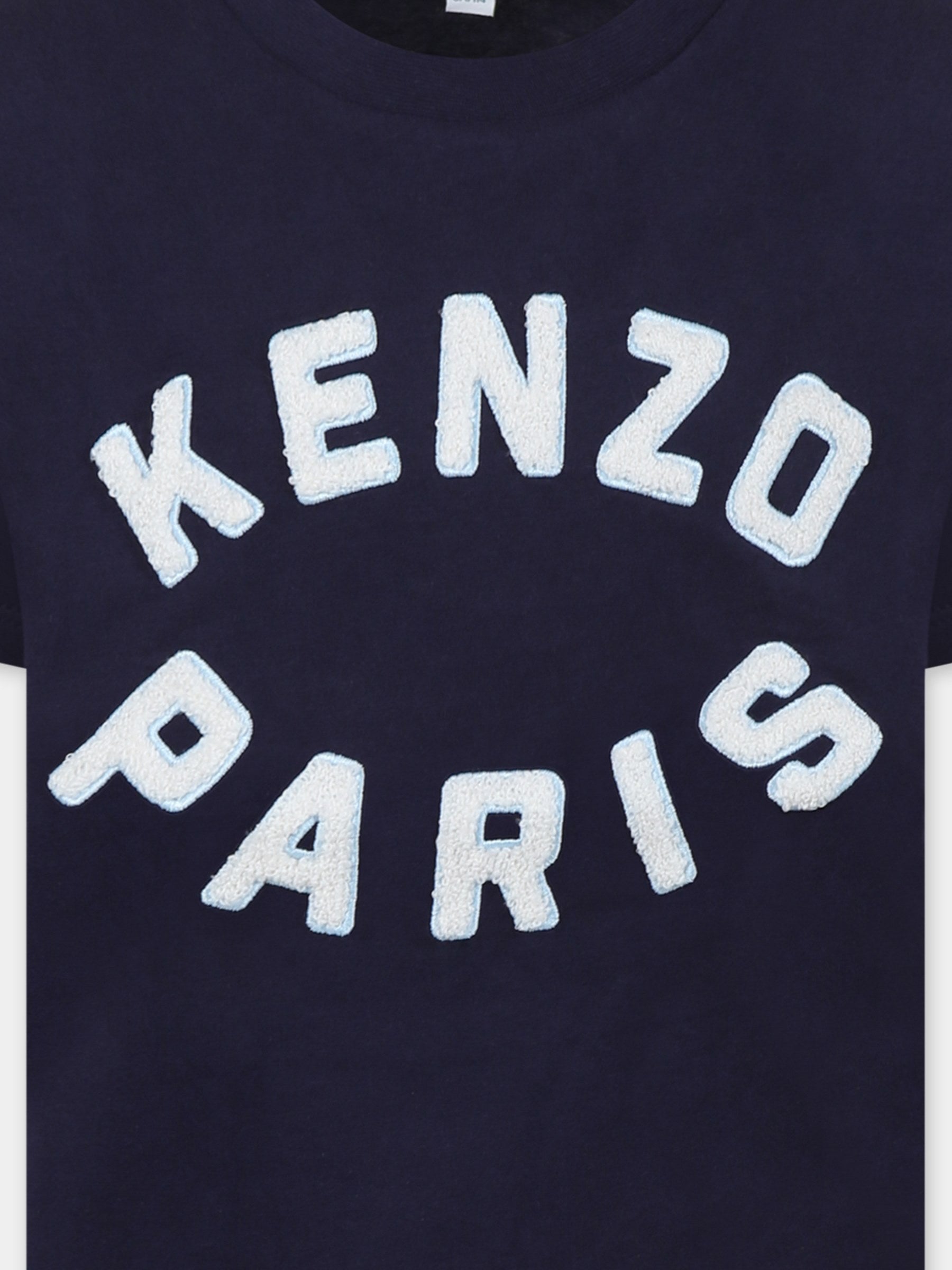 Colore: Blu Descrizione: T-shirt blu del brand francese Kenzo Kids, in cotone organico, con maniche corte e girocollo a costine. È decorata con logo Kenzo Paris ricamato sulla parte anteriore. Dettagli: 100% Cotone organico. Lavare a 30°C.
