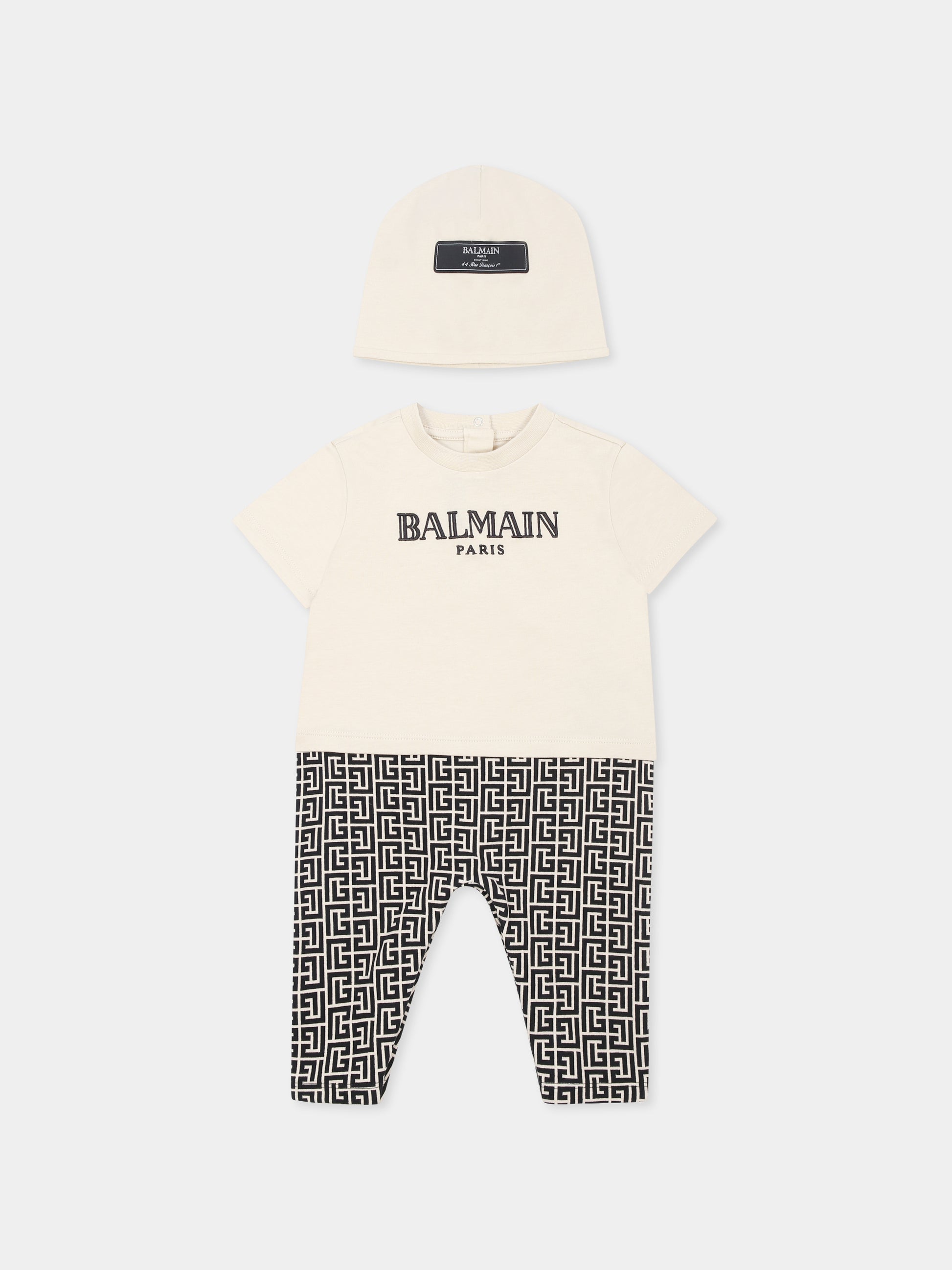 Colore: Beige Descrizione: Set pagliaccetto beige in misto cotone organico, composto da pagliaccetto e capello. pagliaccetto a maniche corte, con girocollo, chiusura con bottoni automatici sul retro e tra le gambe. È decorato con iconico labrinto nero a contrasto, sulla parte inferiore e logo frontale. Cappello con patch logata nera sulla paret anetriore. Dettagli: 95% Cotone, 5% Elastan. Lavare a 30°C.