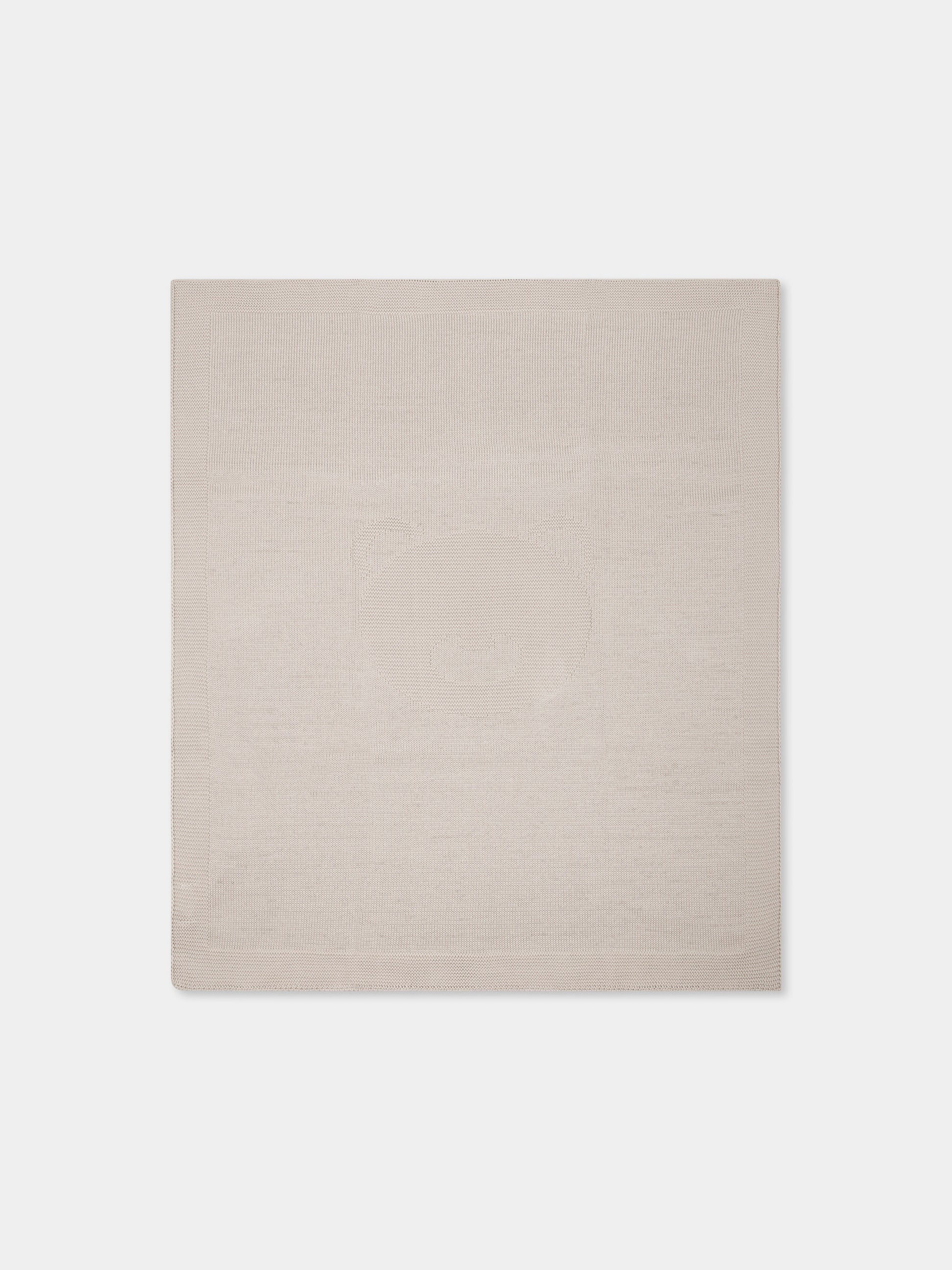 Colore: Beige Descrizione: Coperta beige in filo di cotone, decorata con orsetto ad intarsio sulla parte anteriore. Dimensioni (L x A): 63,5cm x78,5cm Made in Italy Dettagli: 100% Cotone. Lavare a mano.