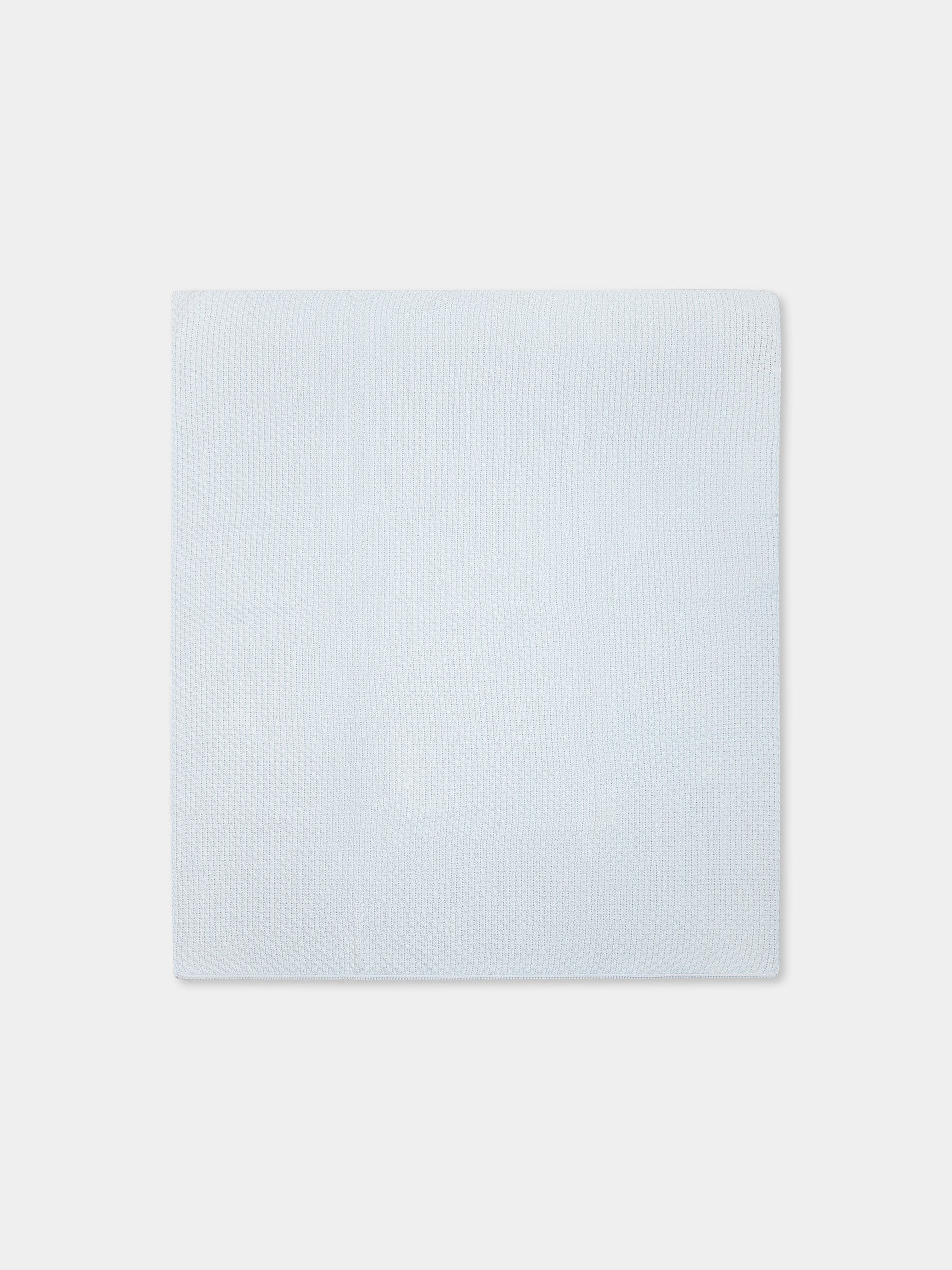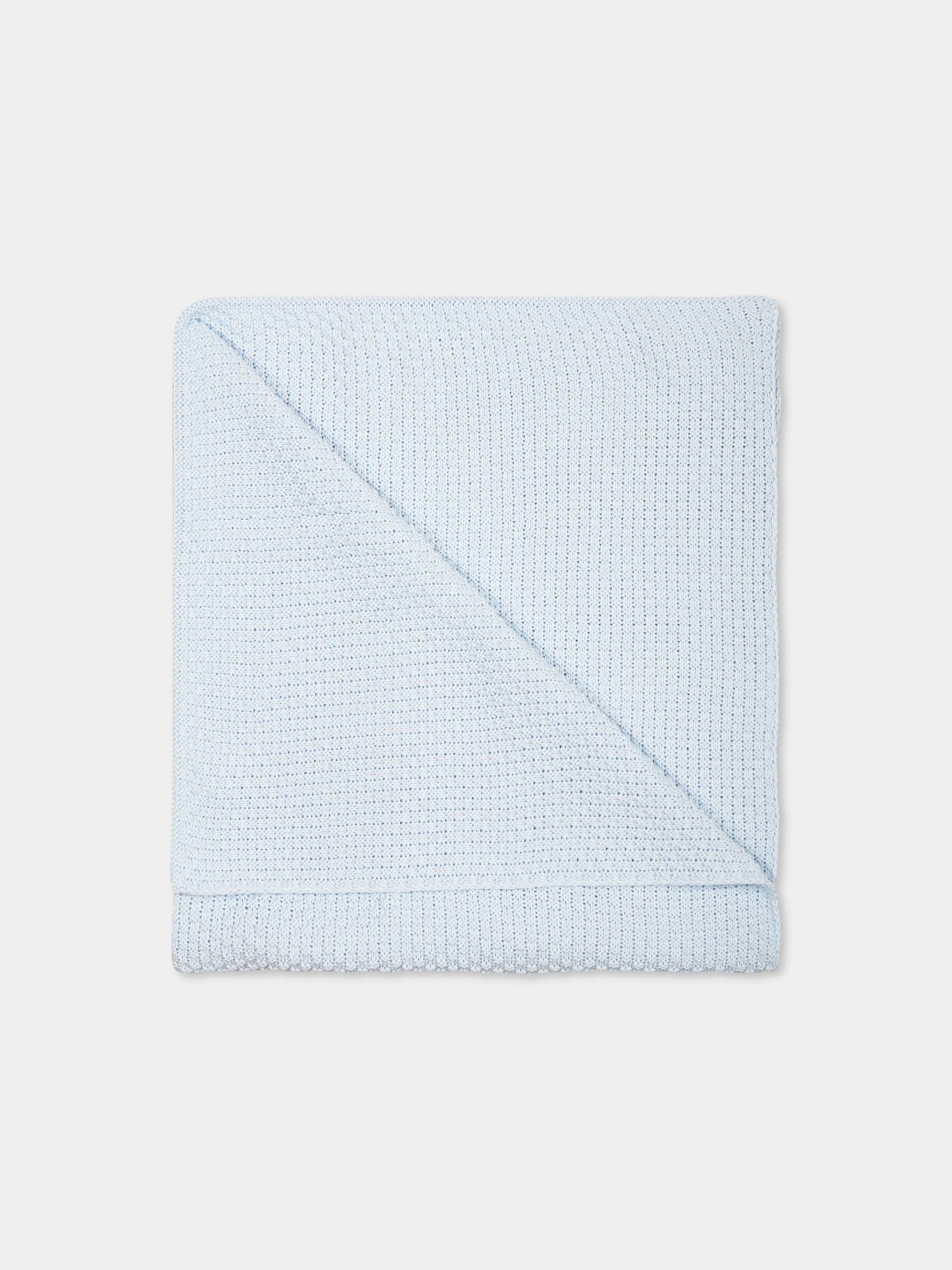 Colore: Celeste Descrizione: Coperta celeste in filo di cotone, lavorata a maglia. Dimensioni (L x A): 67,5cm x82cm Made in Italy Dettagli: 100% Cotone. Lavare a mano.