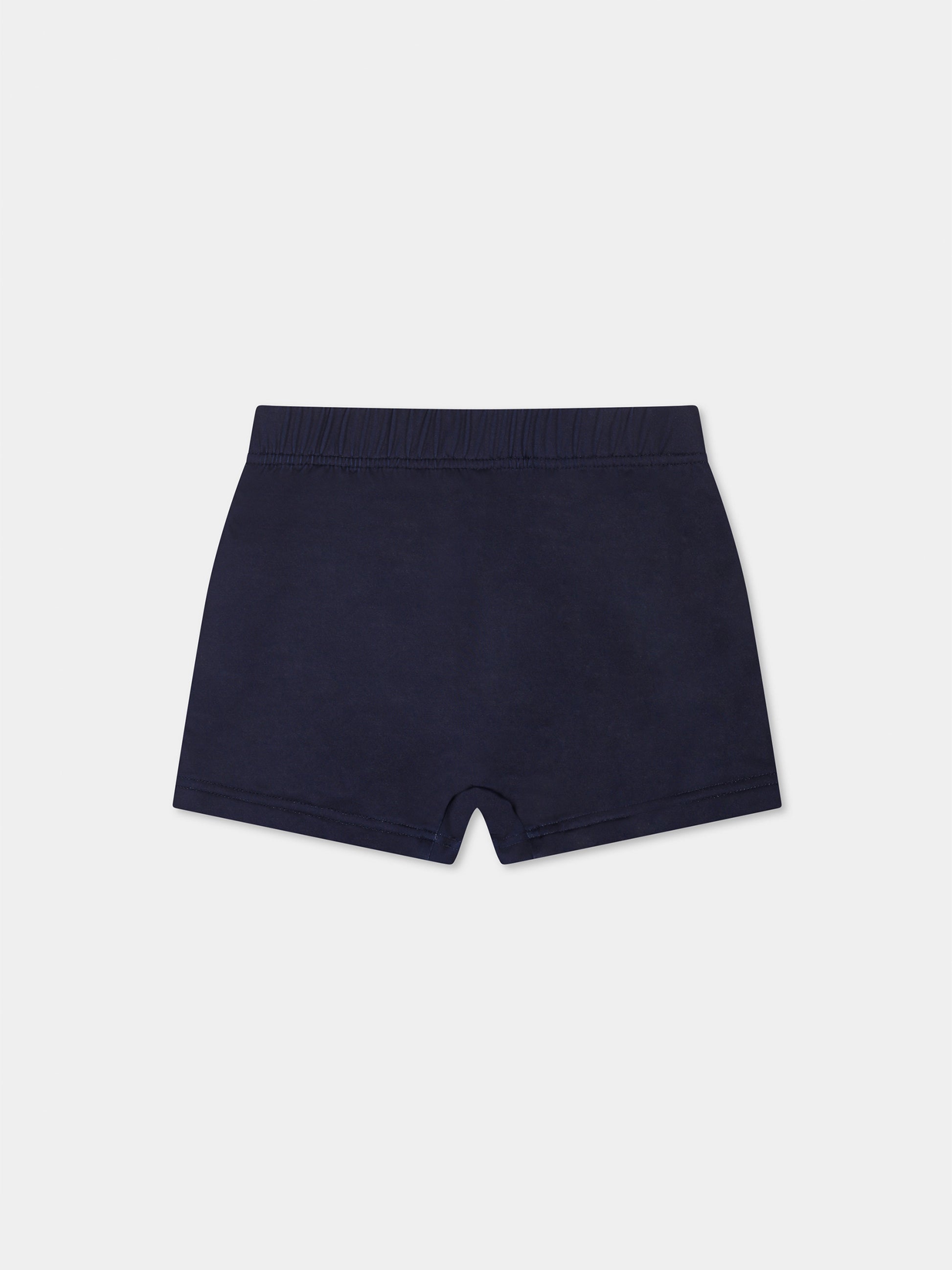 Blue swimsuit for babt boy with Teddy Bear and white logo