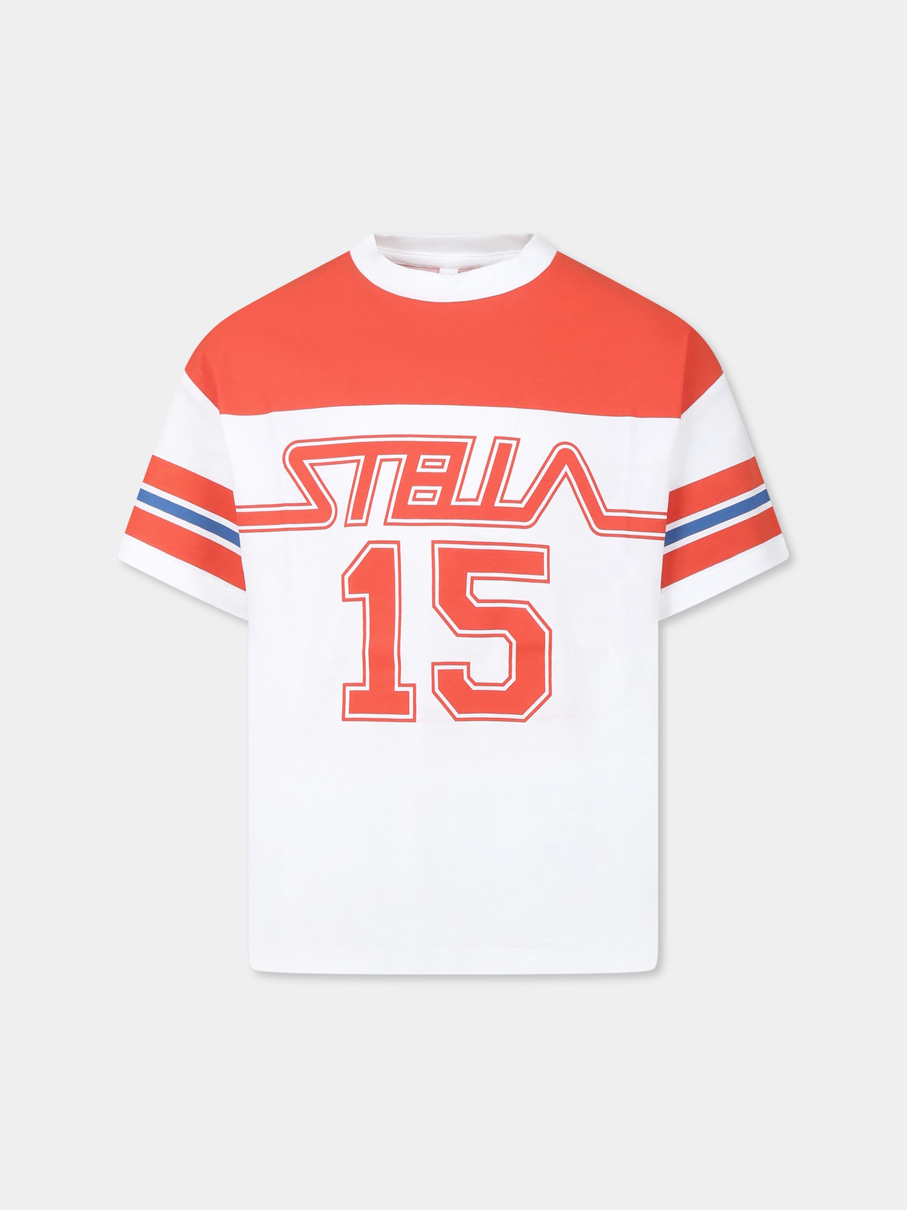 Colore: Bianco Descrizione: T-shirt bianca in cotone organico, con maniche corte, girocollo a costine e dettagli rosso e blu. È decorata con logo e numeri sulla parte anteriore. Dettagli: 100% Cotone organico. Lavare a 30°C.