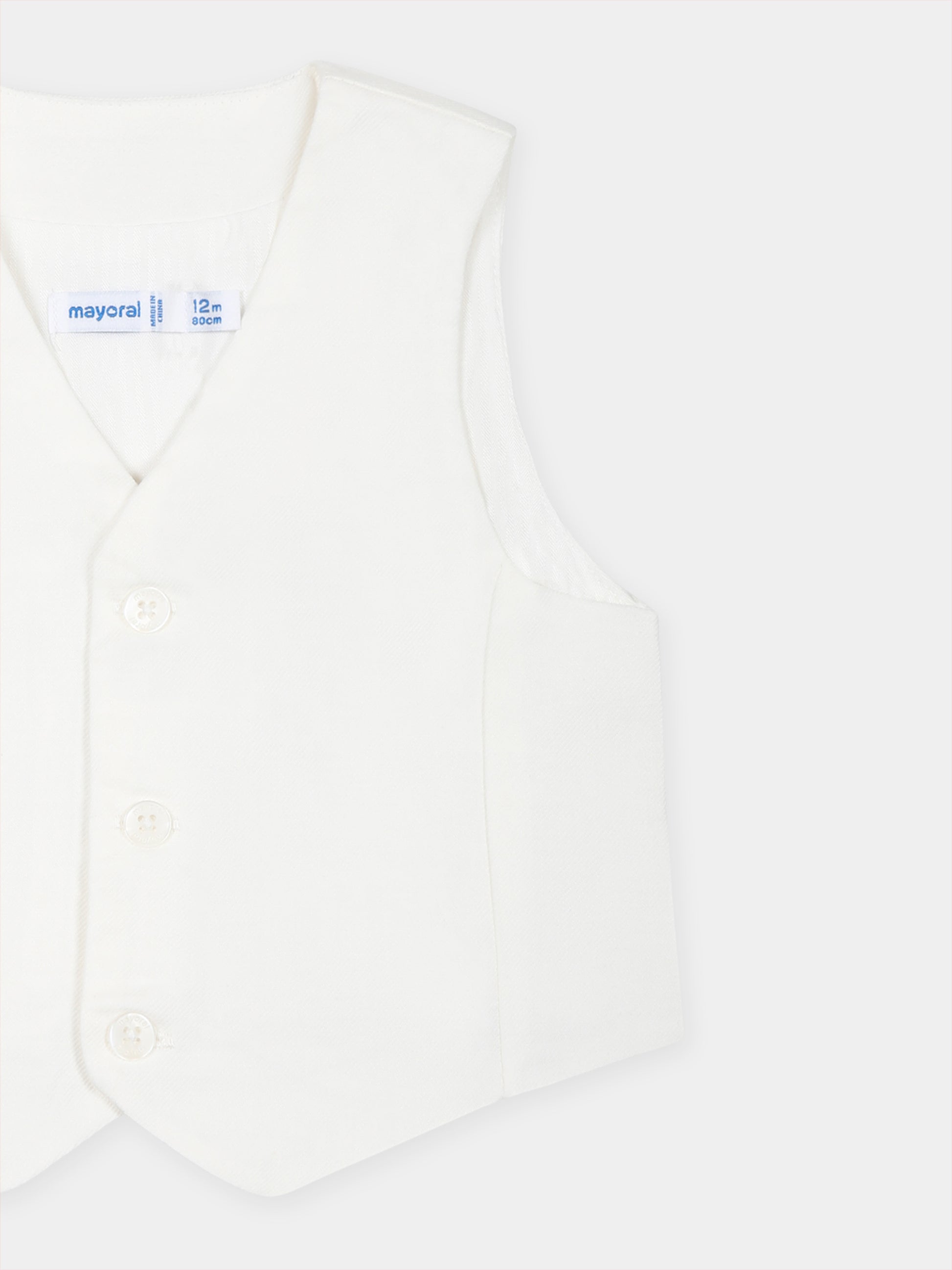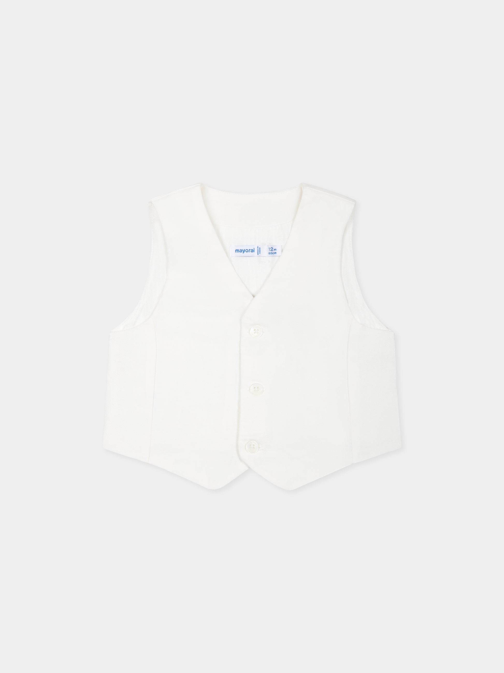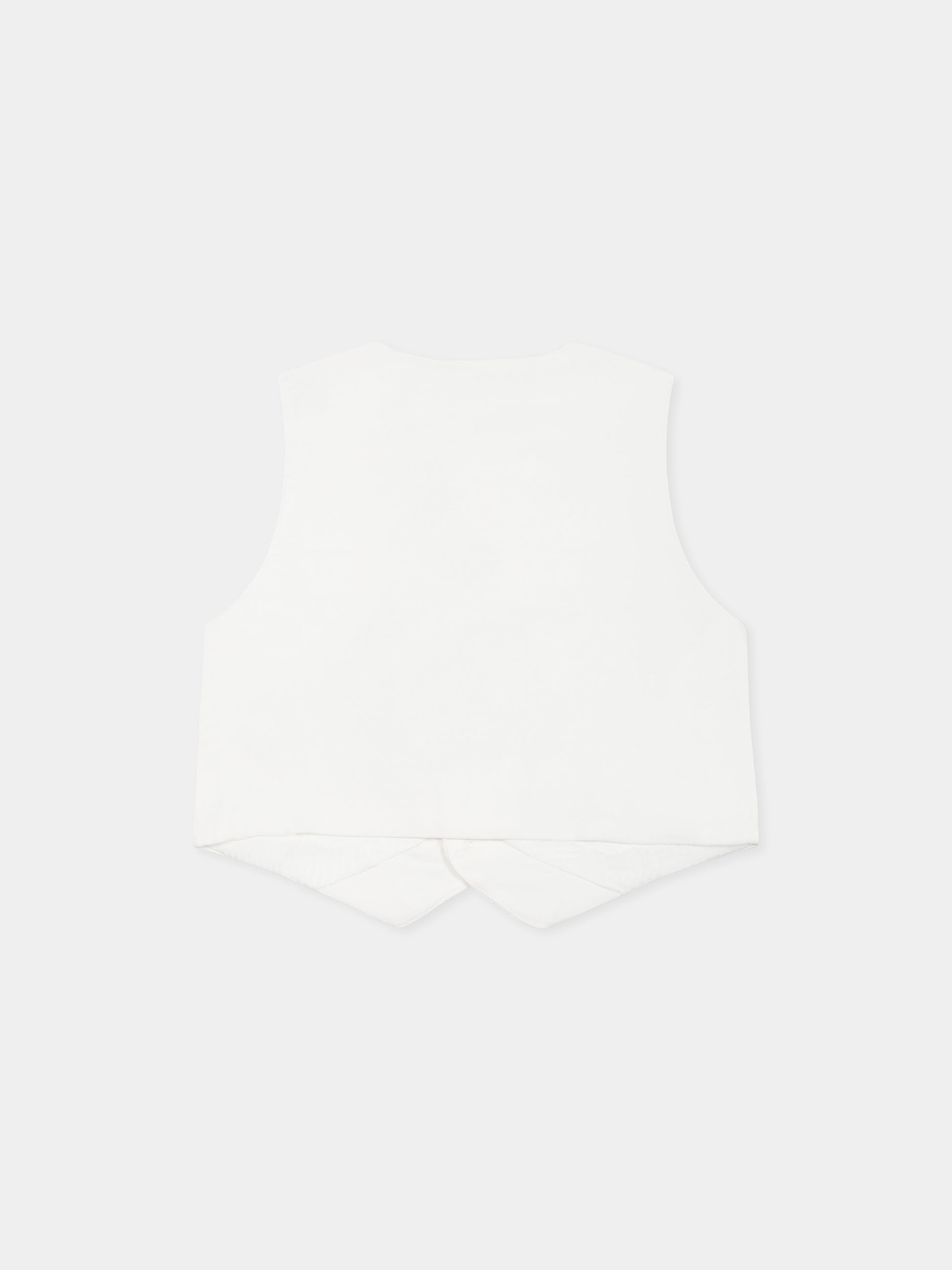 Colore: Bianco Descrizione: Panciotto bianco in misto cotone e lino, con scollo a V e chusura frontale con bottoni. Dettagli: 88% Cotone, 12% Lino. Lavare a 30°C.