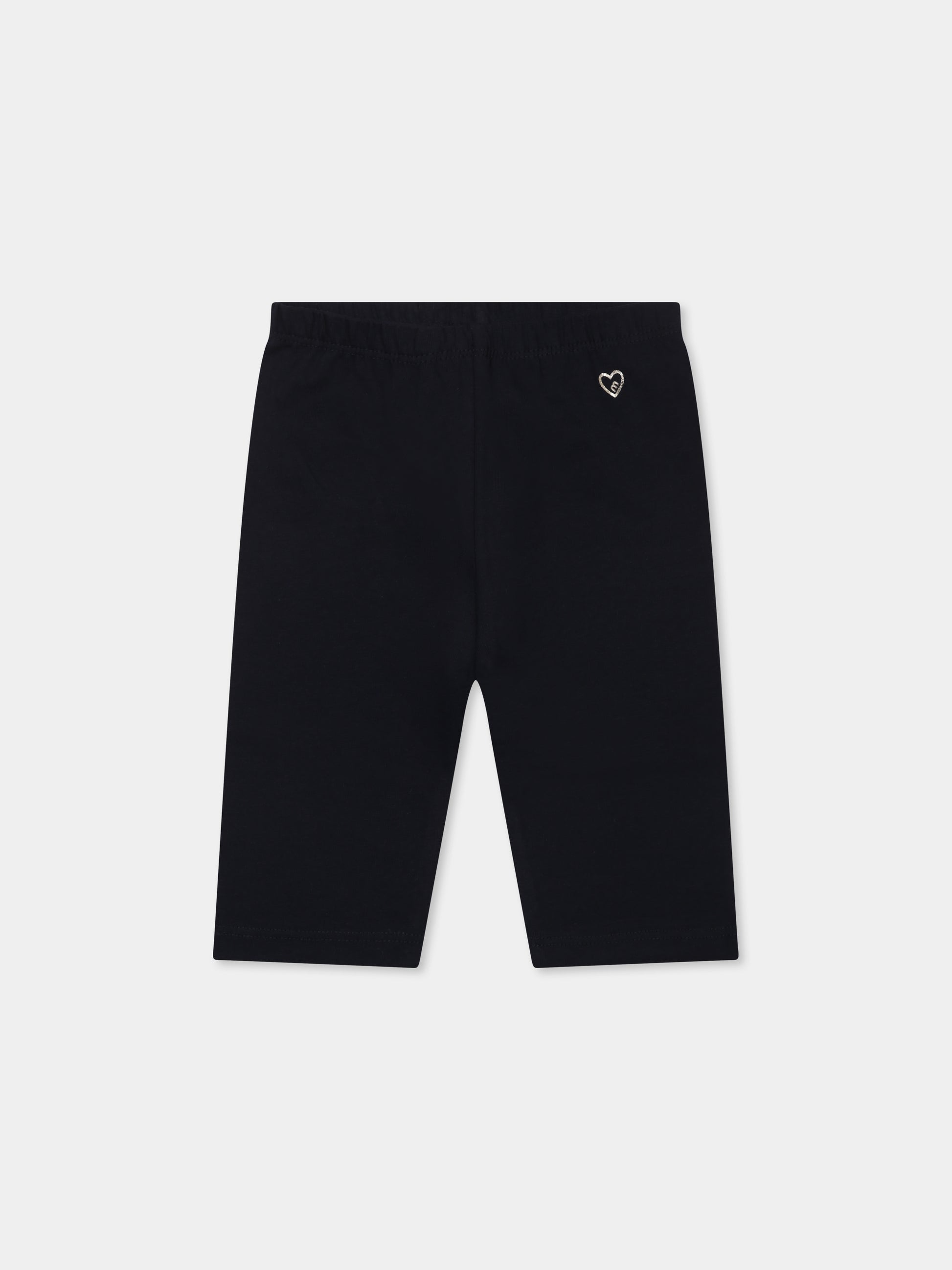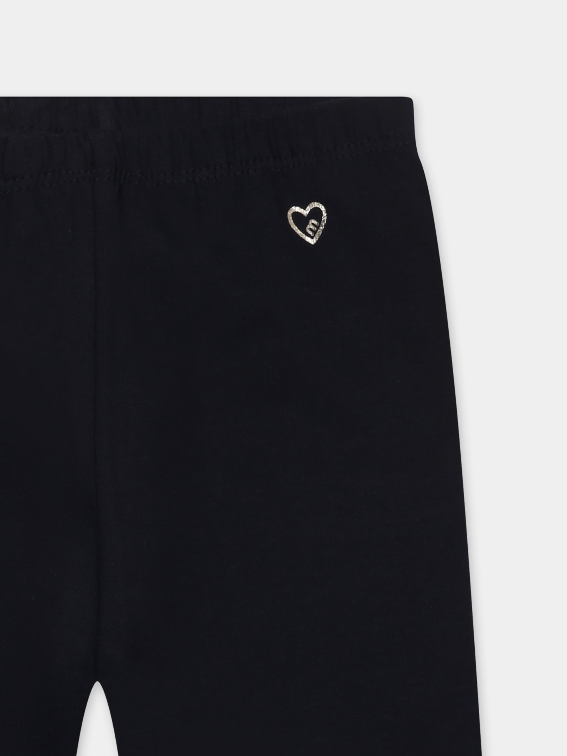 Colore: Blu Descrizione: Leggings blu con vita ealsticizzata; decorati con cuore sulla parte anteriore. Dettagli: 95% Cotone, 5% Elastan. Lavare a 30°C.